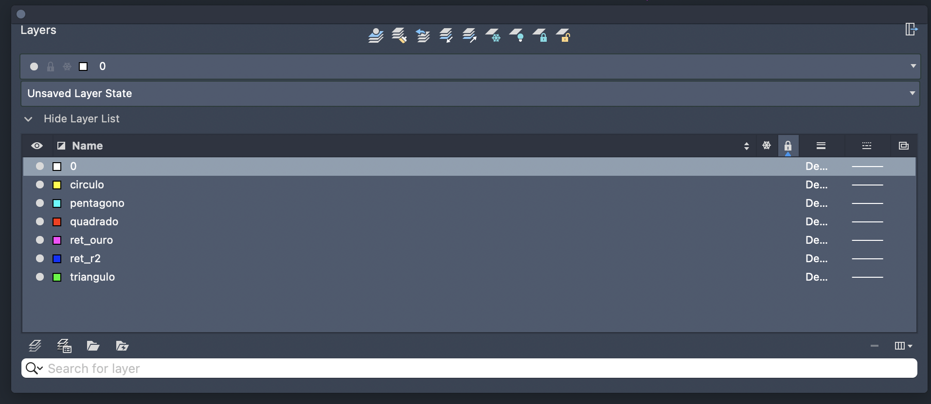 Exploração das possibilidades do AutoCAD como criaçãde layers e através de polígonos (quadrado).