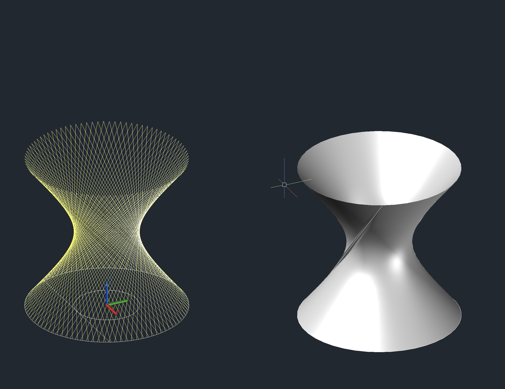 Criaçãde uma hiperboloide atraves dos comandos ARRAYCLASIC (Ferramenta usada para criar repeticcedil;ão de retas em objetos regulares ) e REVOLVE (gera um sólido 3D )