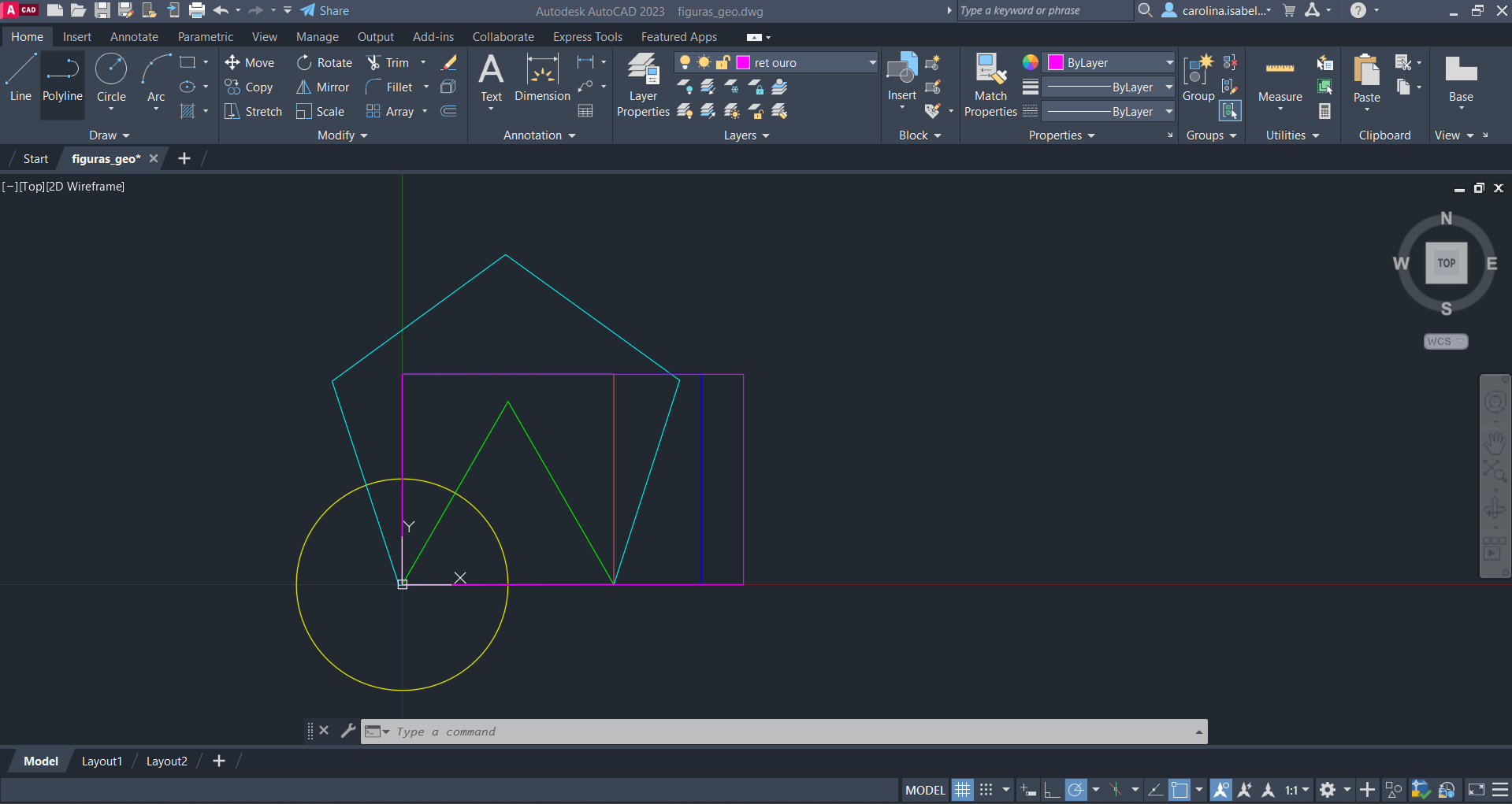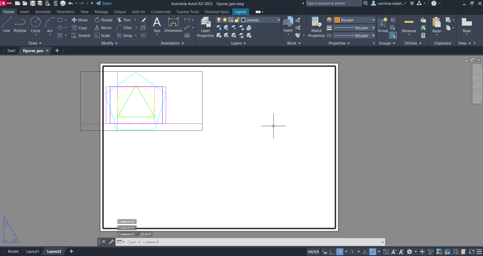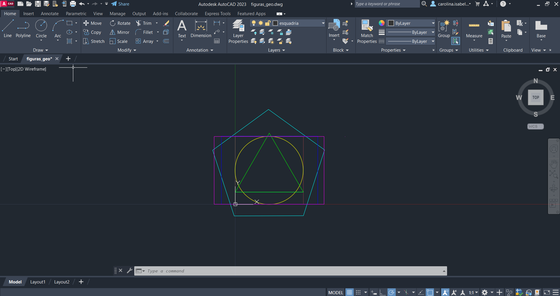 Crição de 6 poligonos no AutoCad, cada um na sua respetiva layer criada na aula anterior.
