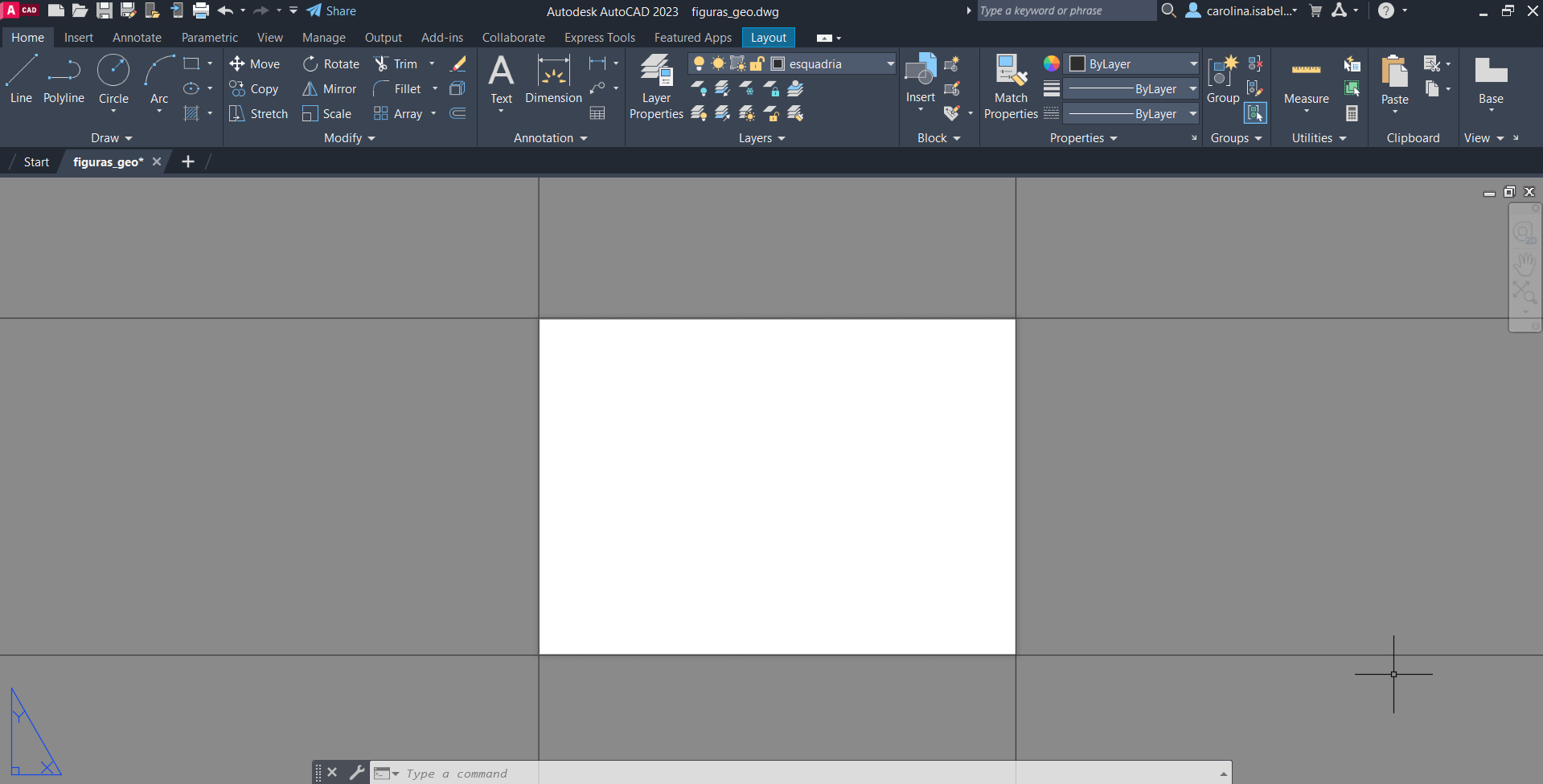 Nesta aula apos finalizar a figura em Model, passamos para o Layout. Onde configuramos: o tamanho, alterando para as medidas de uma folha A3, e a esquadria utilizando os comandos XLINE, OFFSET, TRIM e PEDIT.
