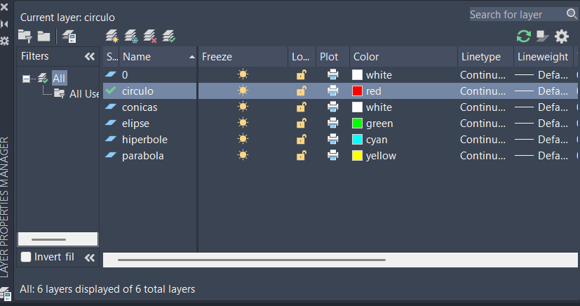 Início de novo exercício sobre parábolas, com criação de 5 layers.