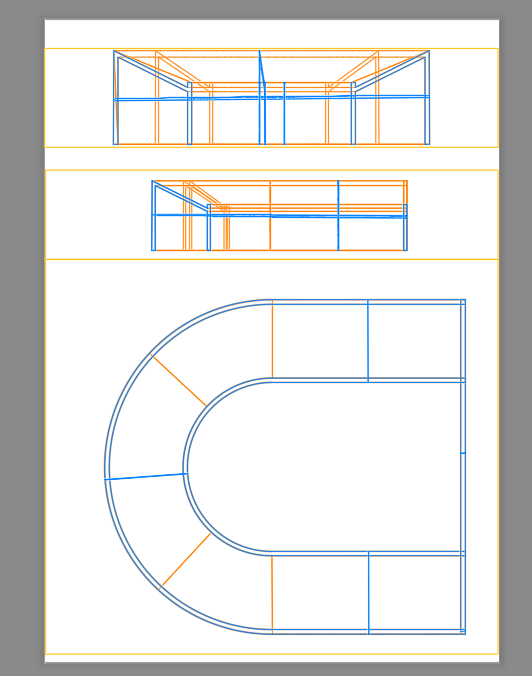 Iniciámos um novo exercício inspirado em pirâmides, utilizando um ficheiro LPS (Layout Page Setup) para treinar a criação da planta e dos respetivos cortes.