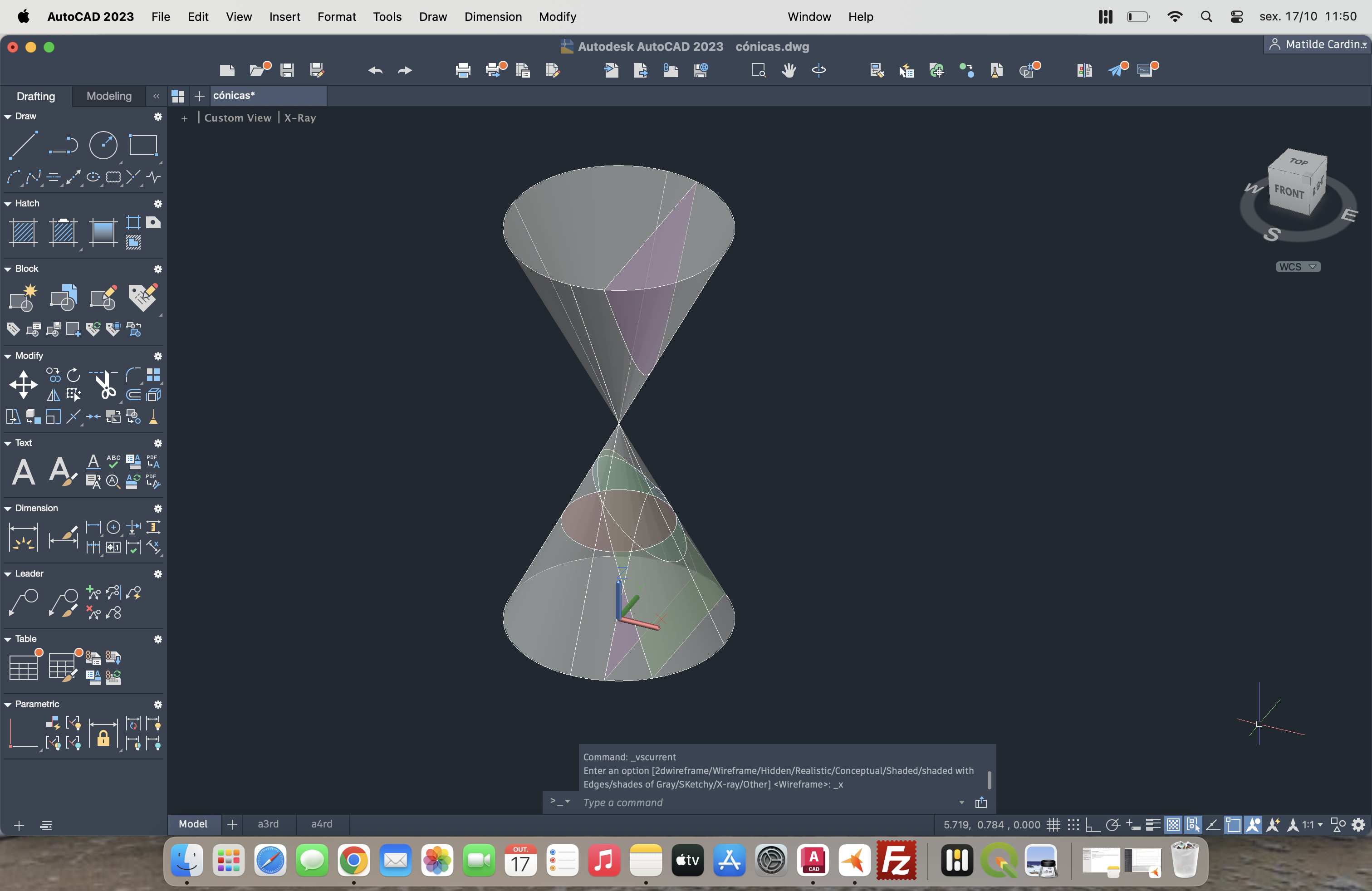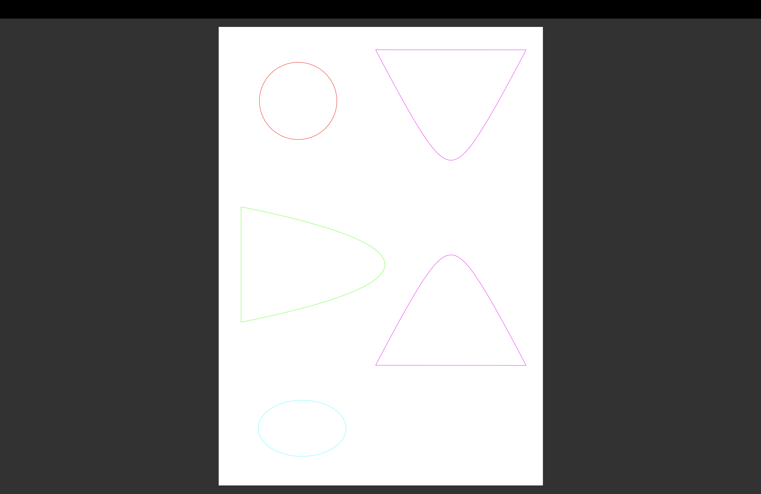 Apresentação de cada elemento (círculo, elipse, hipérbole e parábola) na folha A4, à escala 1/20.