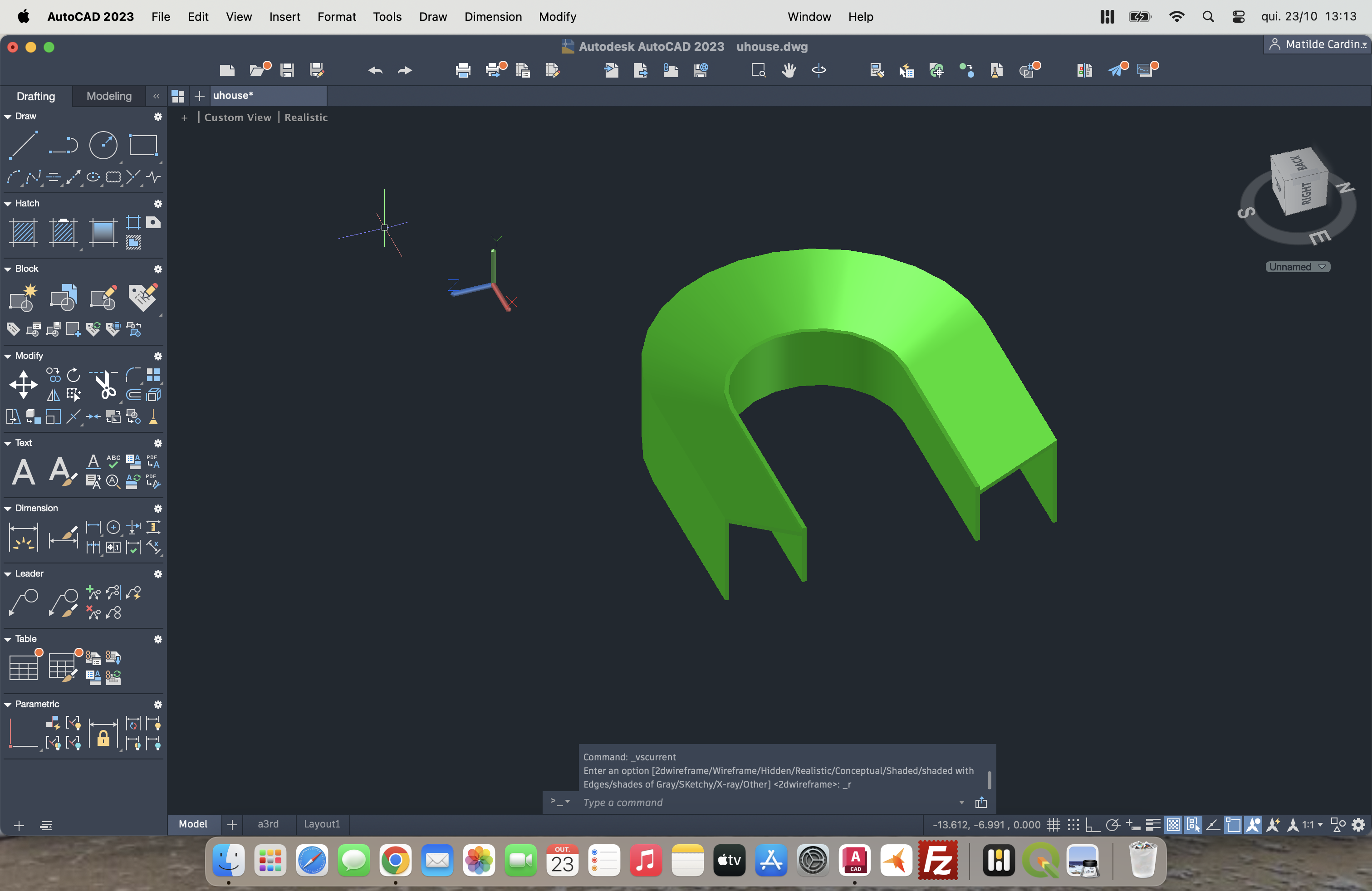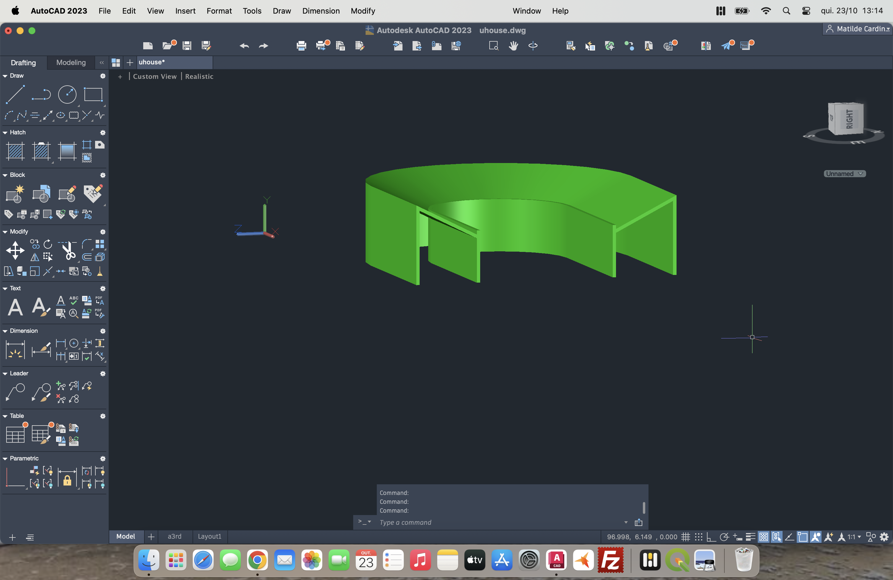 Continuação do exercício anterior. Realização de 2 perfis (transversal e longitudinal) e uma planta.
