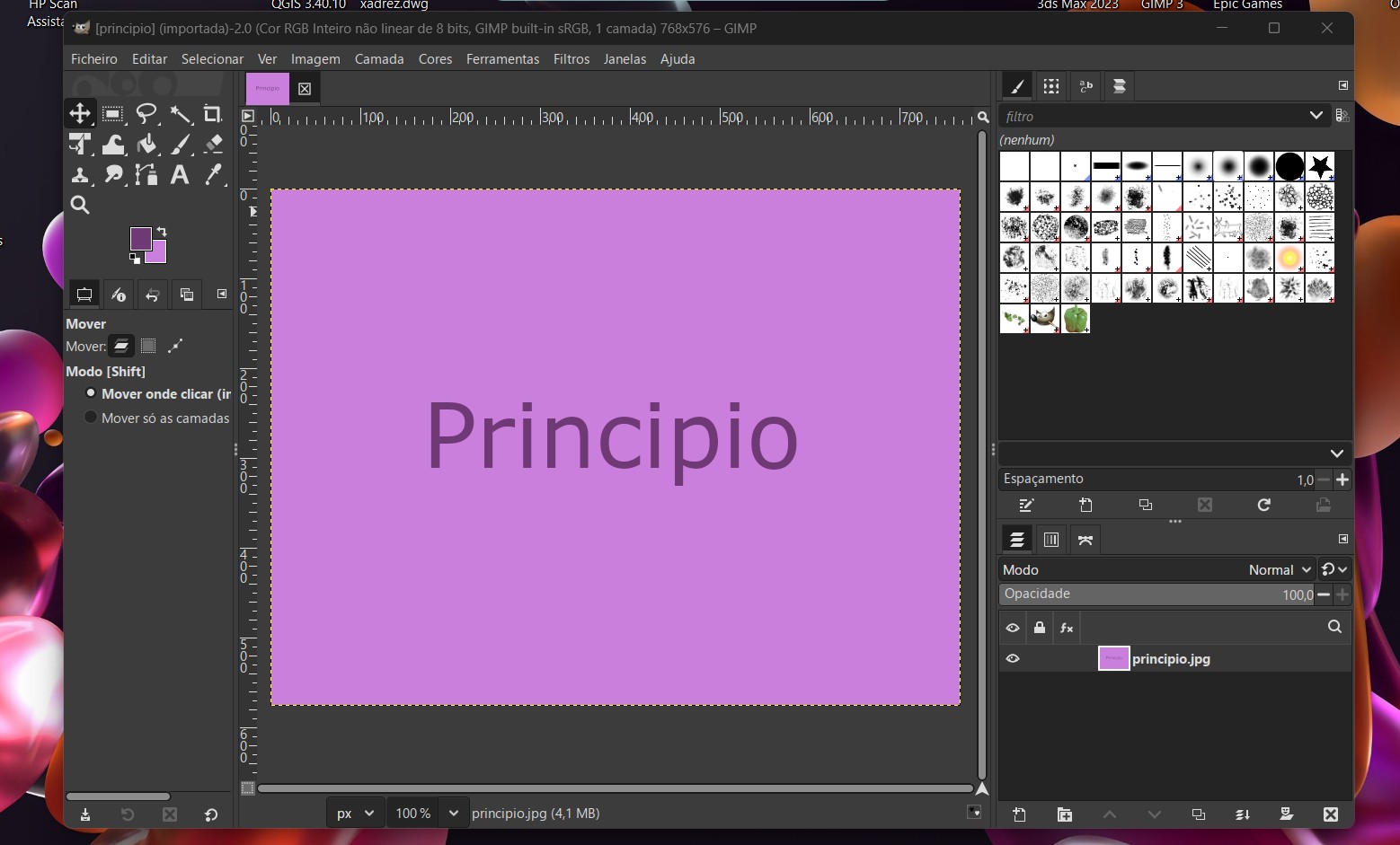 Abertura de um novo ficheiro no Gimp e inserção de legendas "Princípio" e "Final", para inserir no vídeo final.