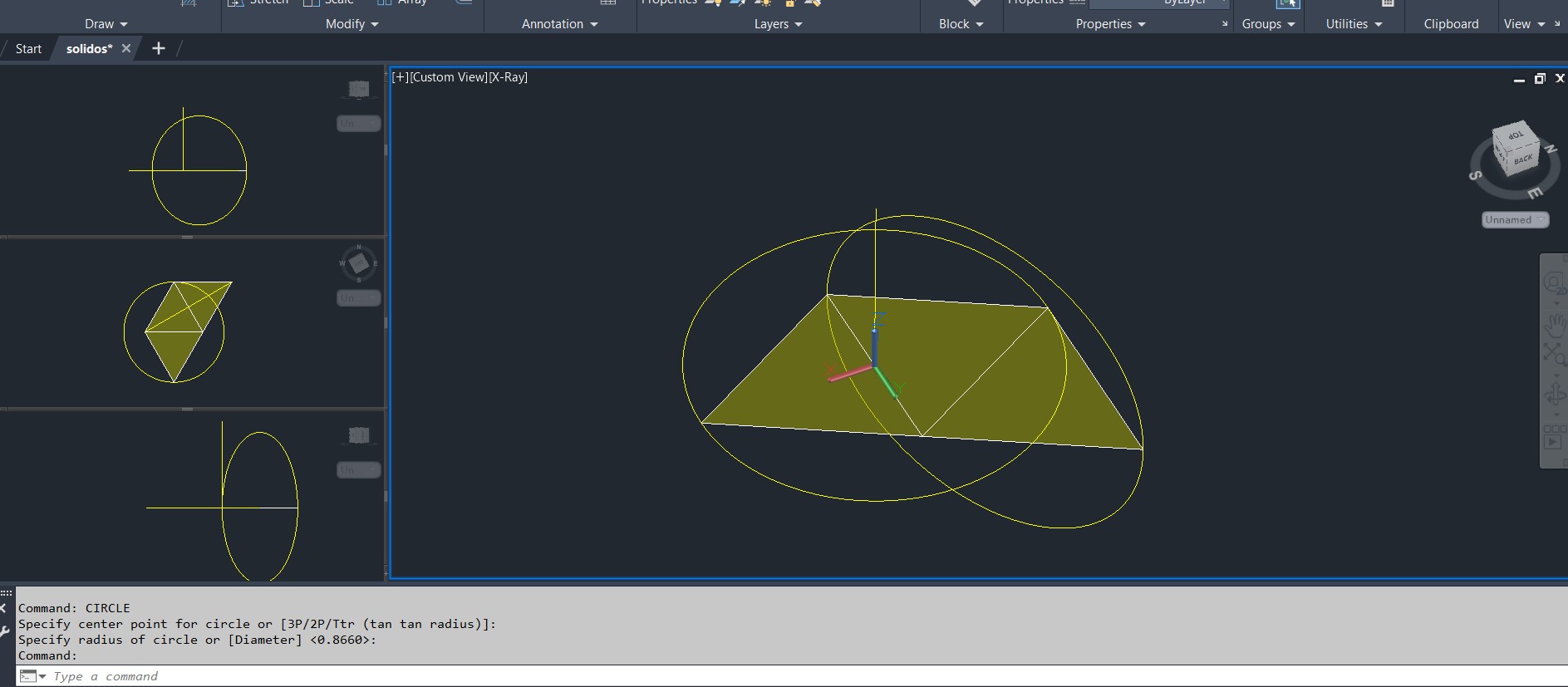 Início do exercício dos sólidos no AutoCAD