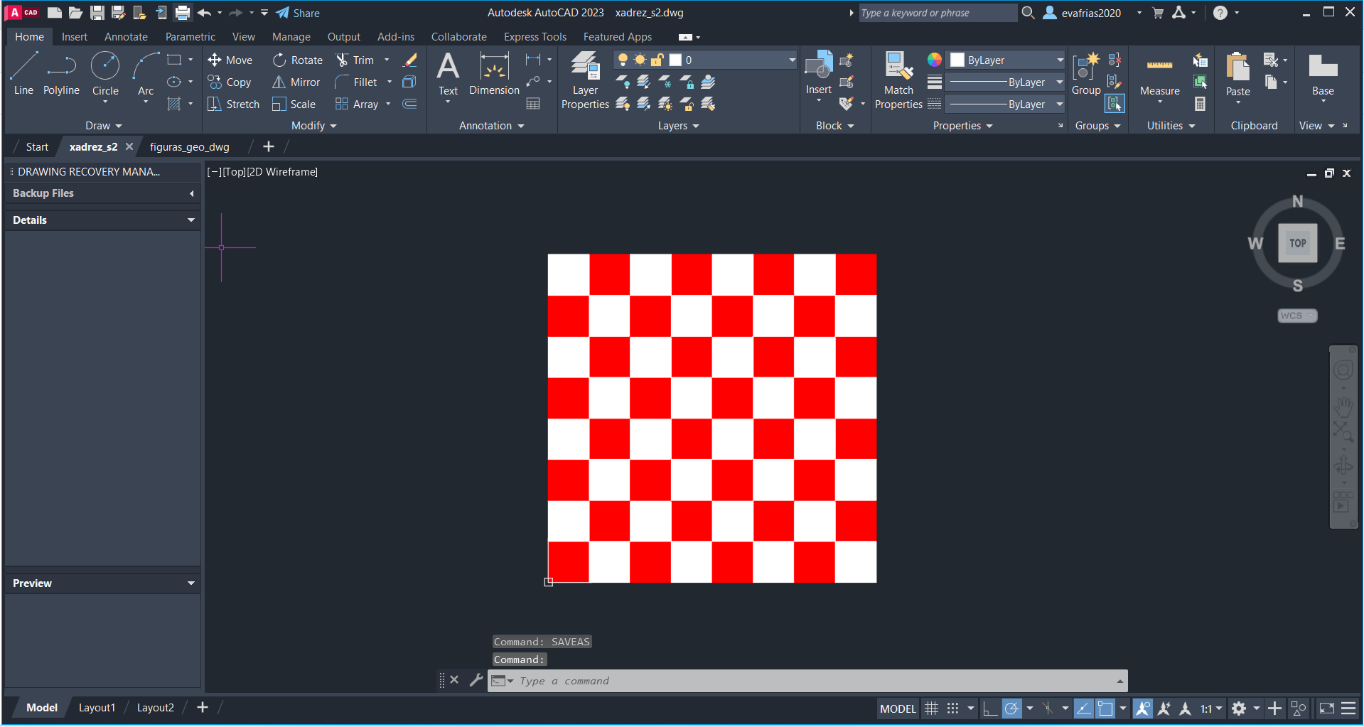Primeiro contacto com o software através da criação de um tabuleiro de xadrez (usando autocad e com o mesmo método através do Notedpad++).