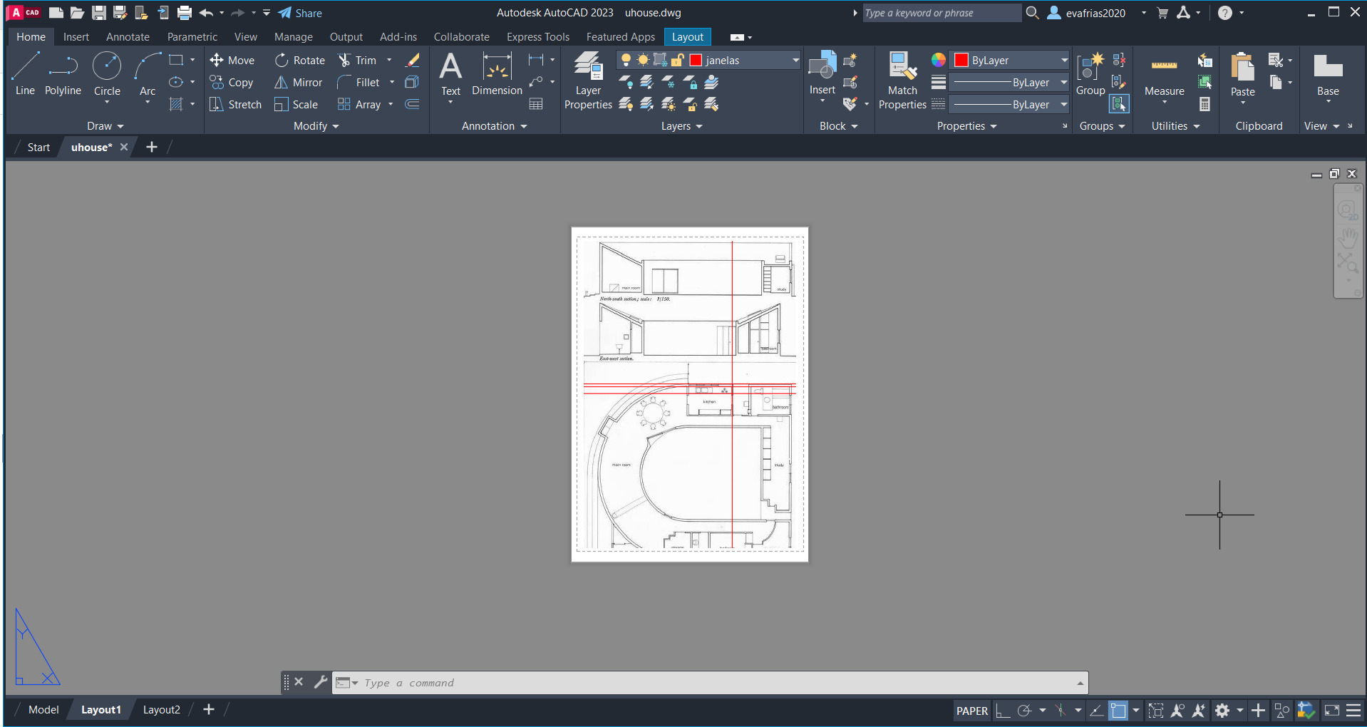Começo de um novo exercício com a planta do projeto White u House, de Toyo Ito. Escalámos a planta e inserímo-la numa folha A4 à escala 1/100.