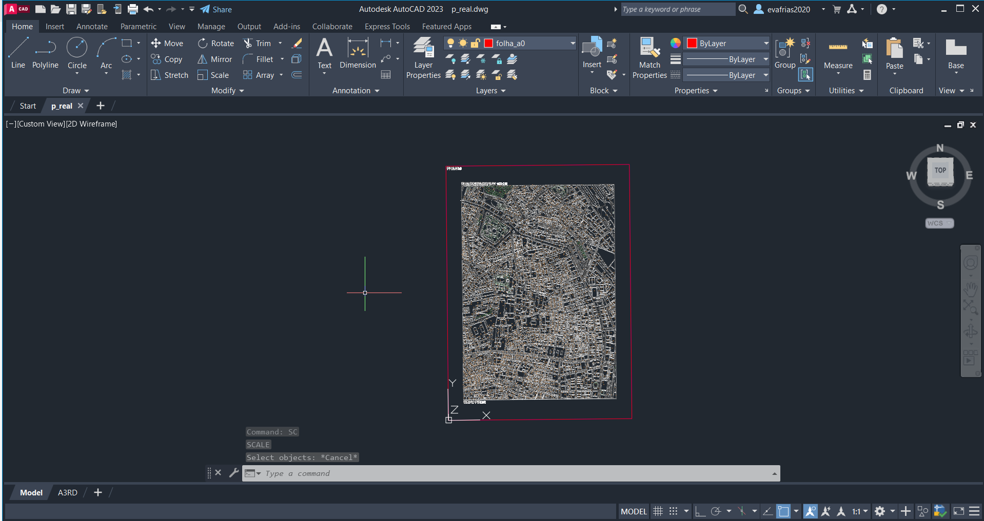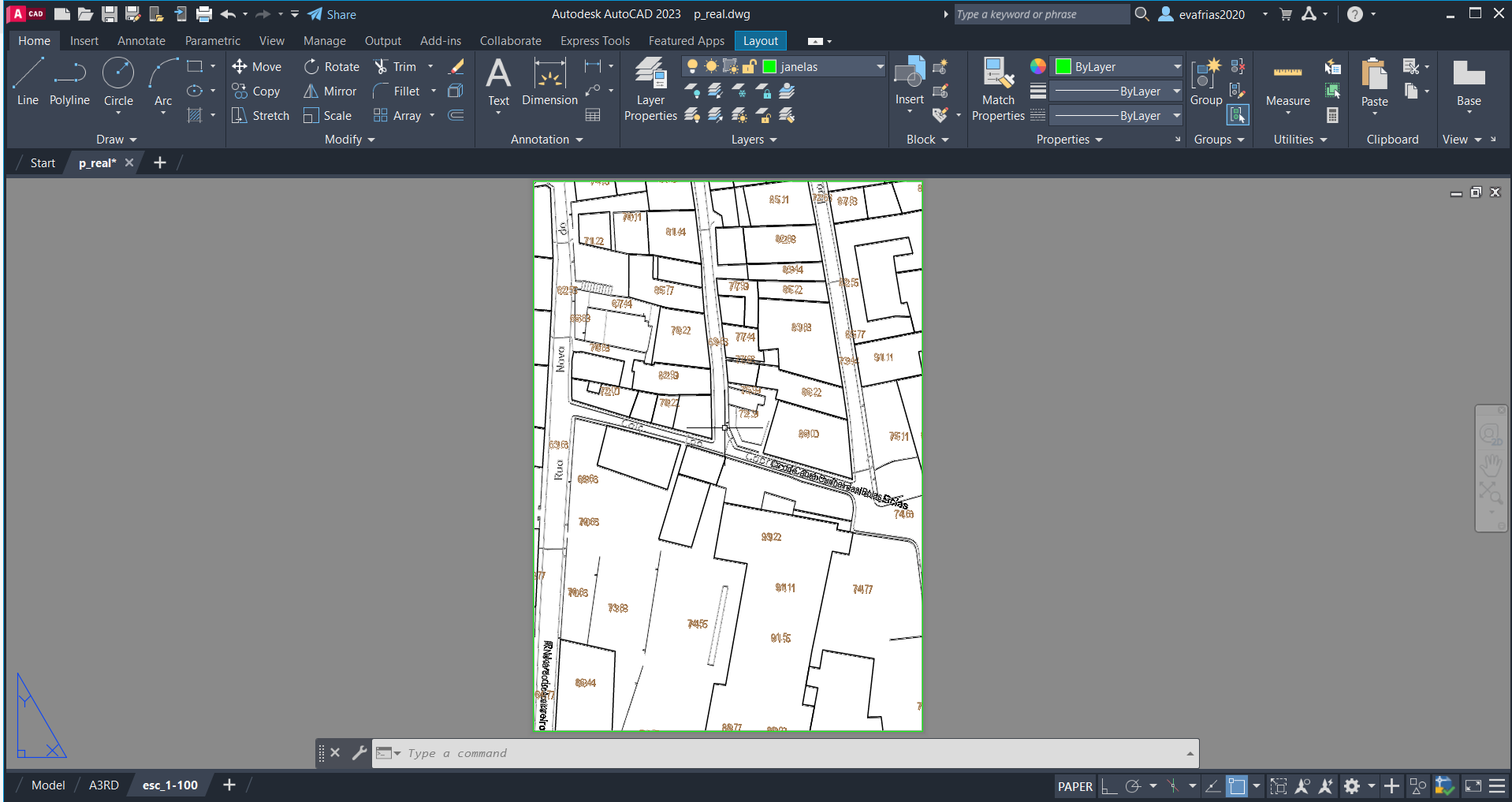 Criação de dois layouts A0, onde se escalou corretamente a planta para as escalas 1/100 e 1/1000.