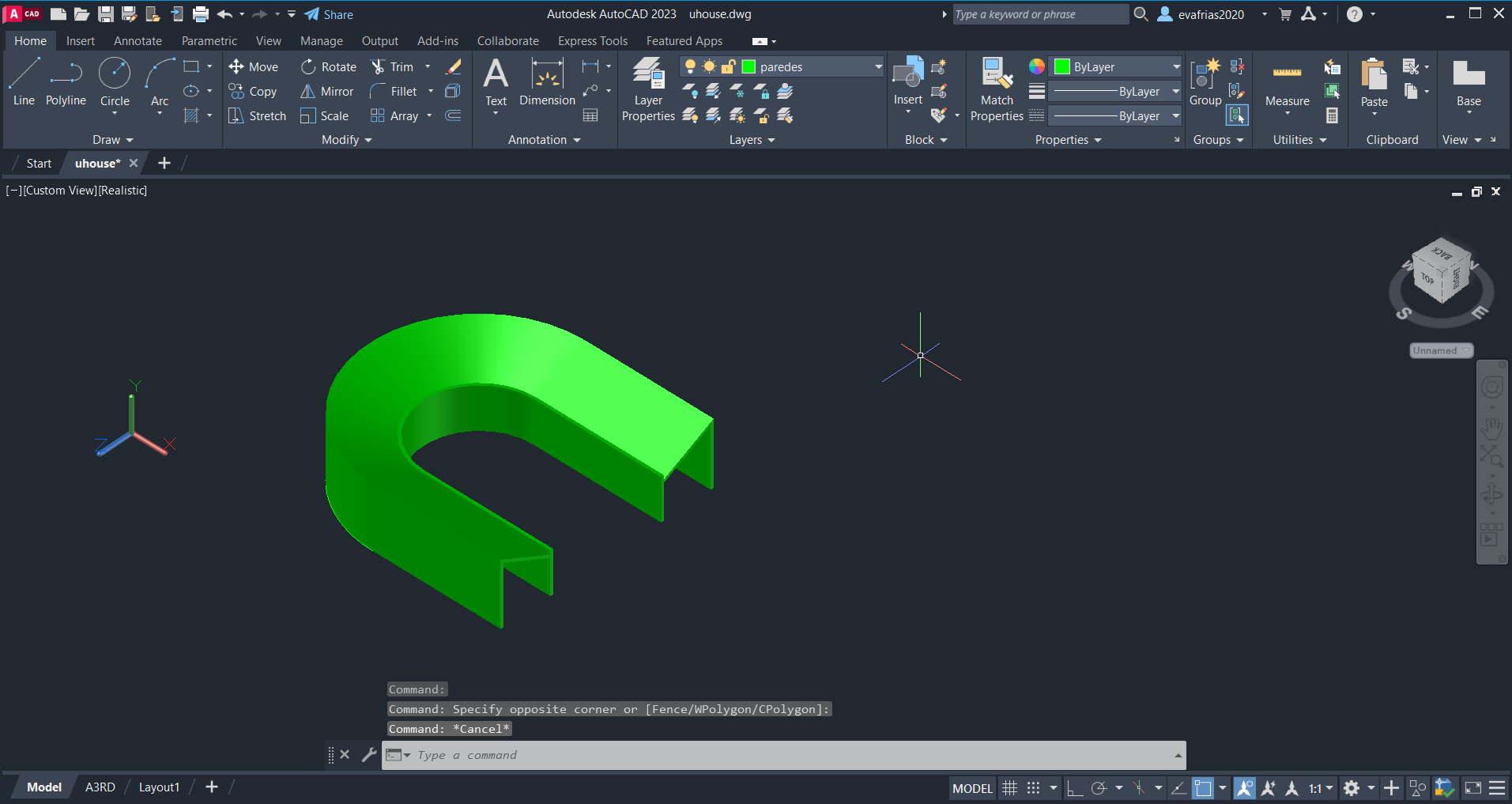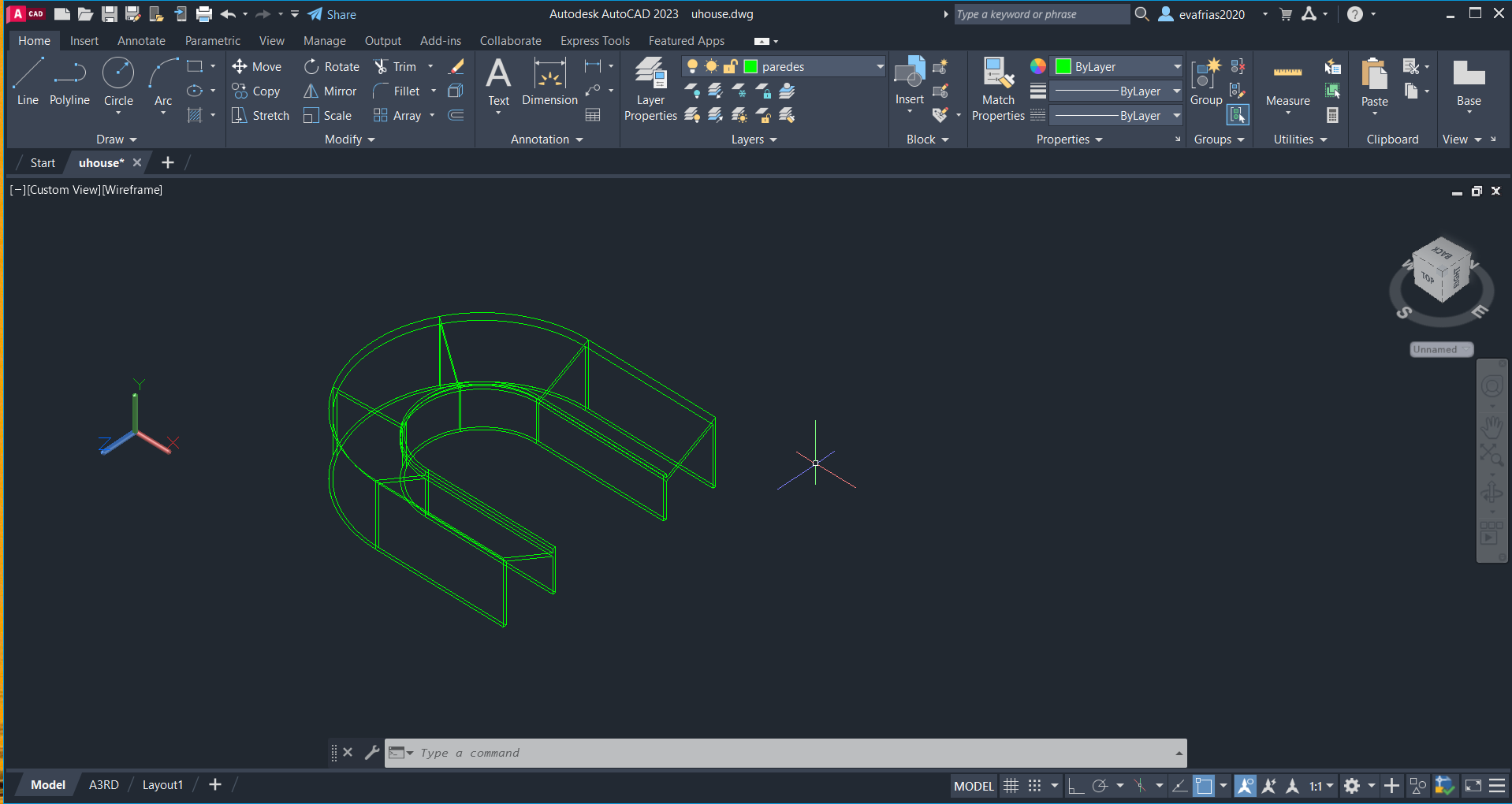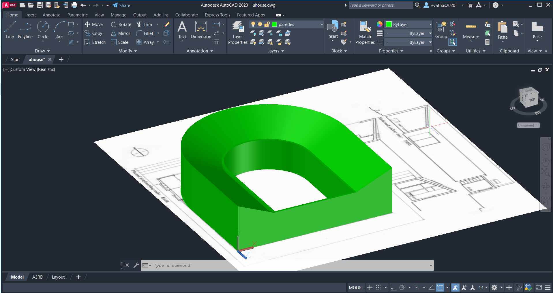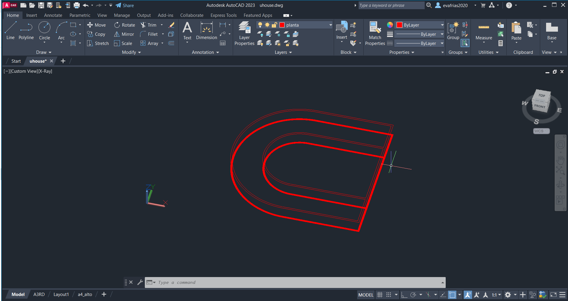 Continuação do exercício anterior. Realização de 2 perfis (transversal e longitudinal) e uma planta.