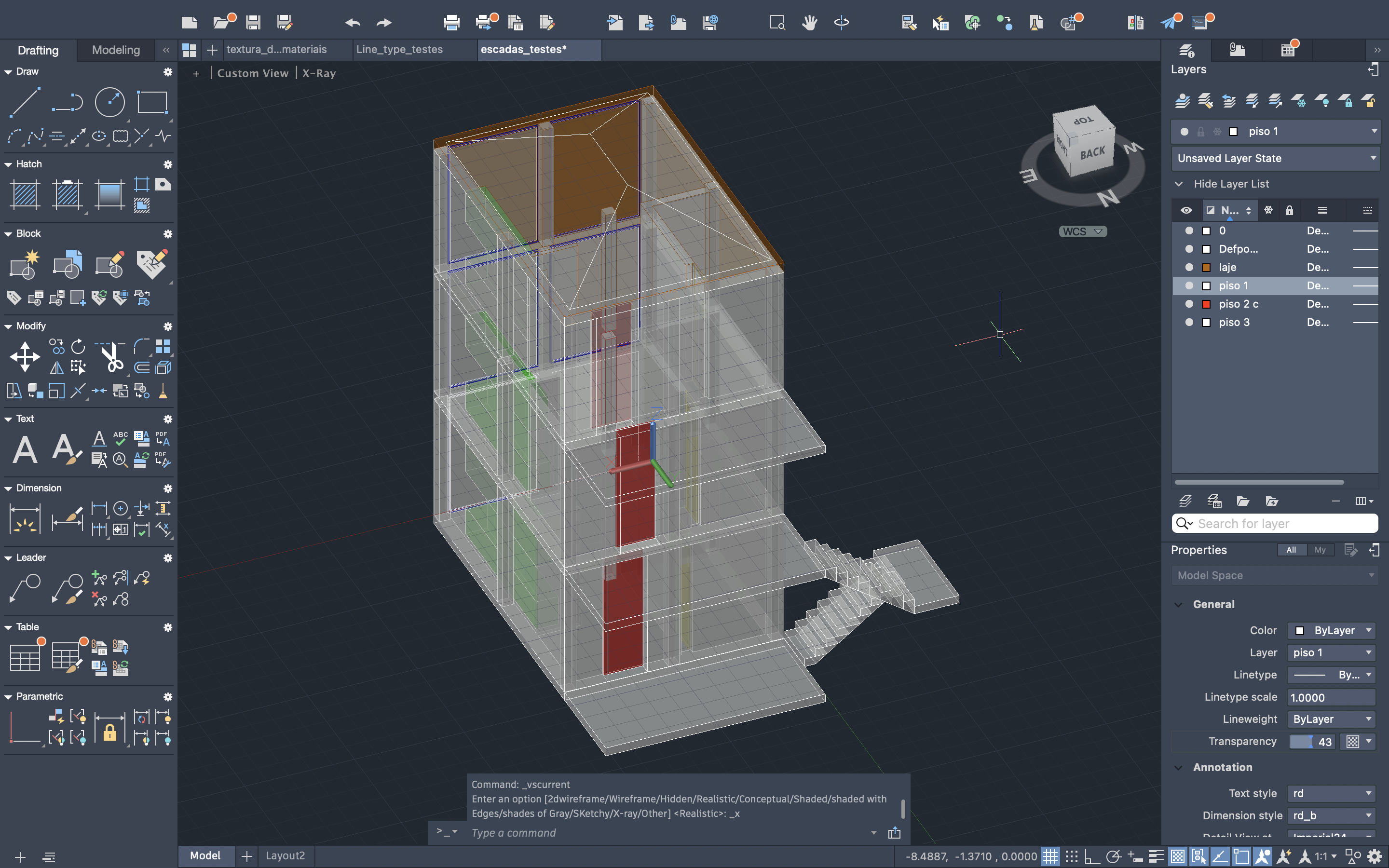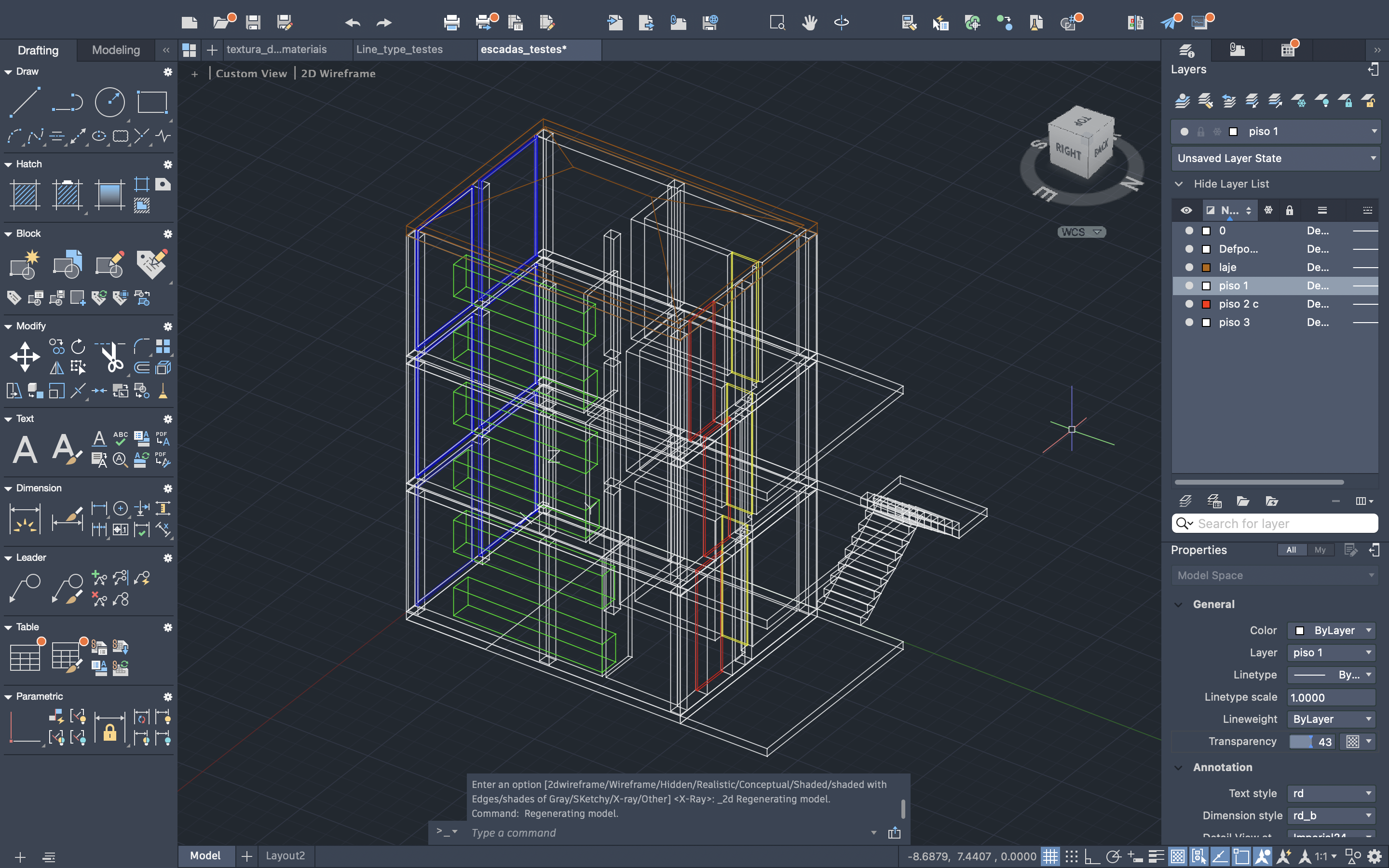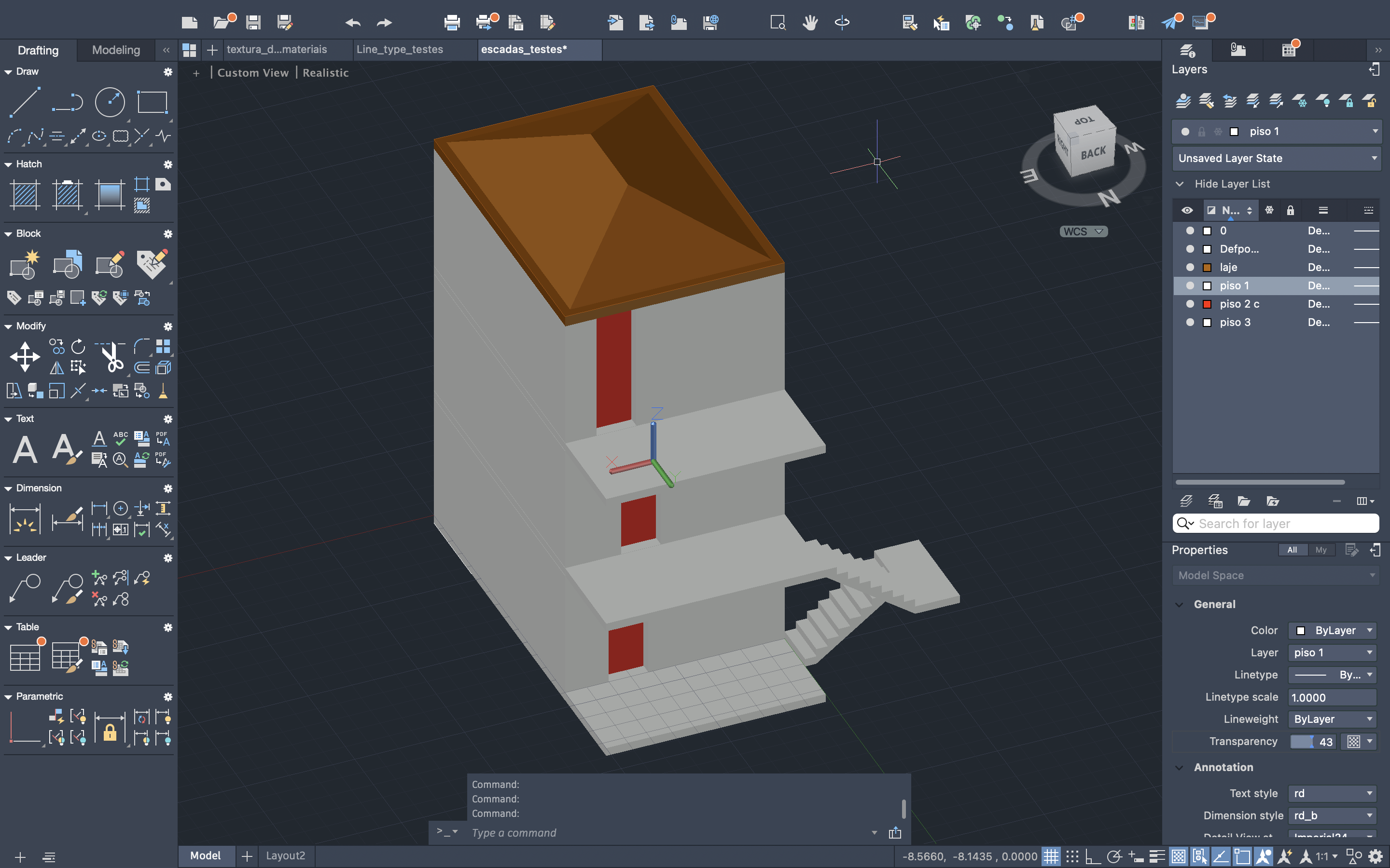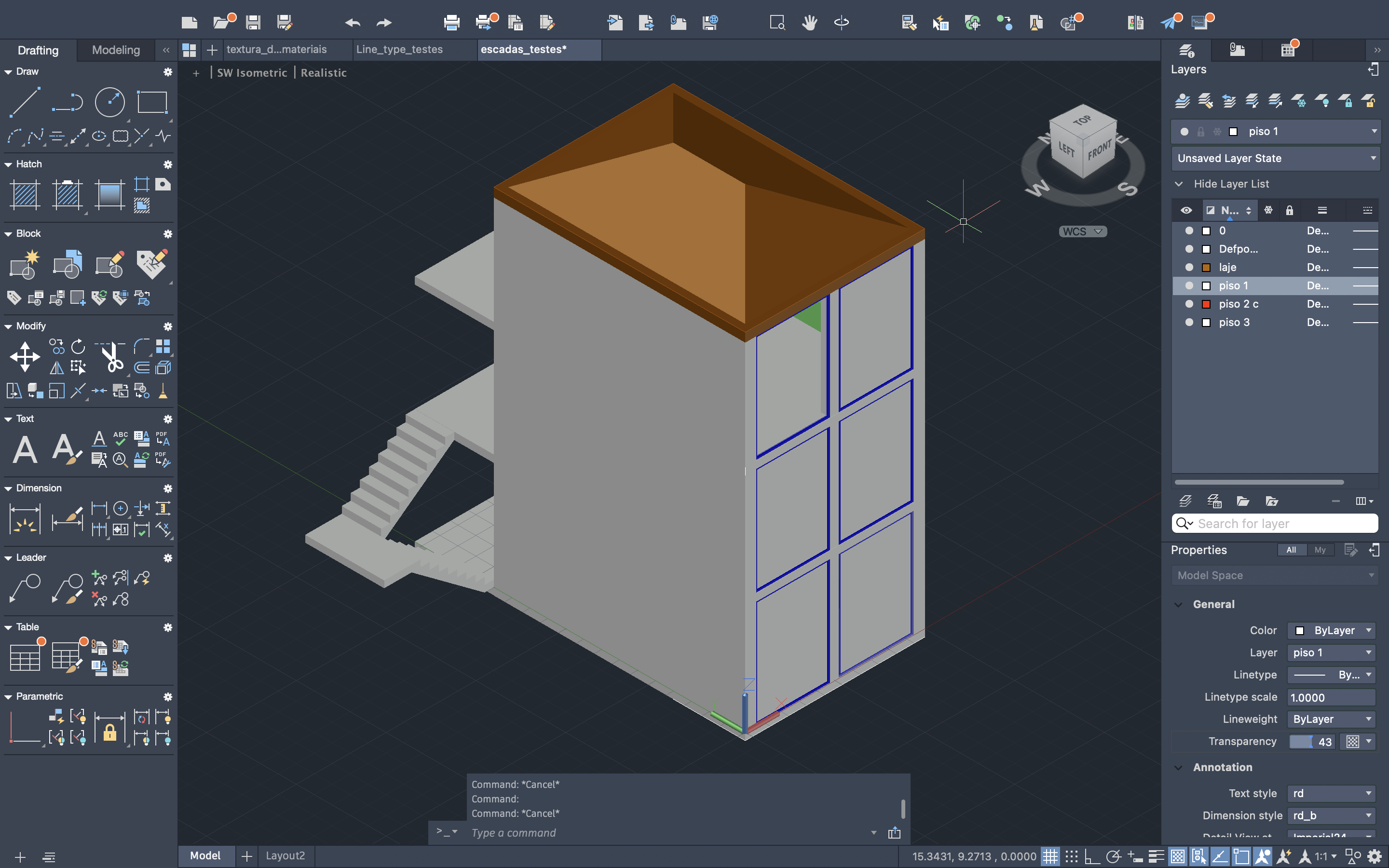 - Adicinar escadas a partir do comando 3dstairs (documento Isp instalado do site do professor);