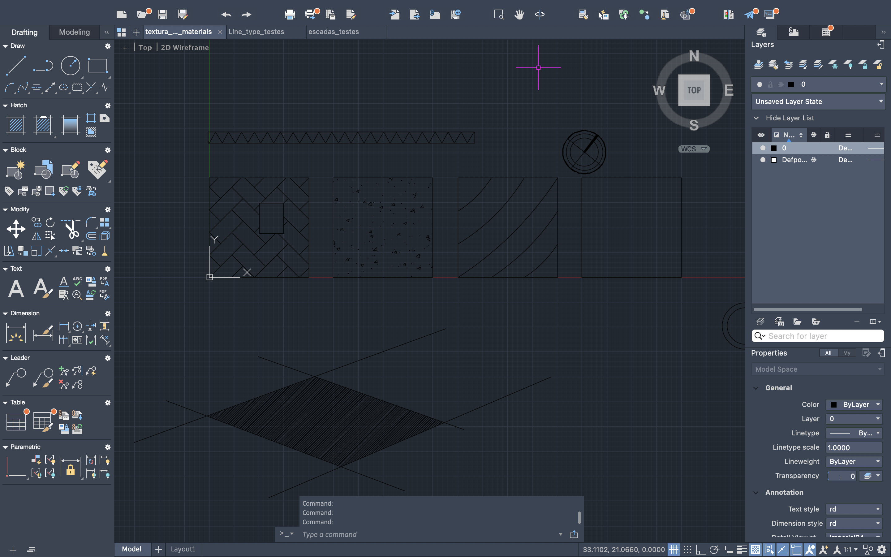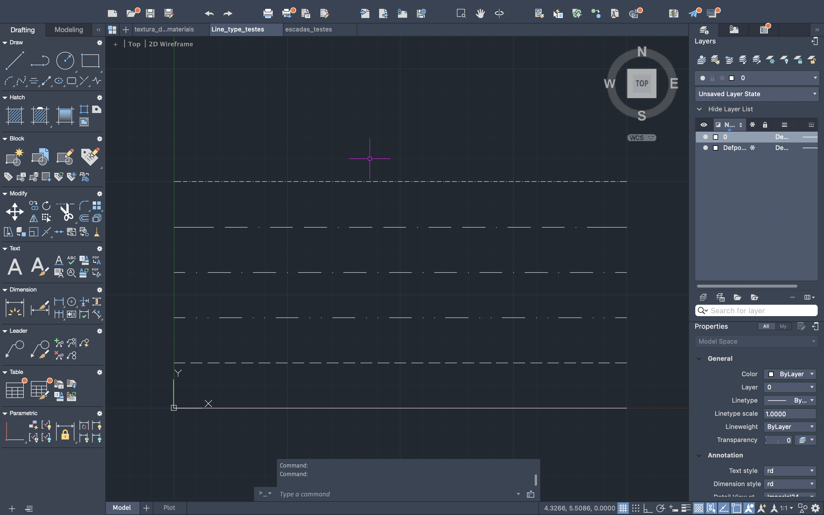 - Testar tipos de linha e suas escalas: Border, Dashdot, Hidden e Divide.