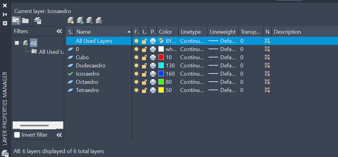 Iniciámos o trabalho em AutoCAD 3D, explorando as ferramentas básicas de modelação tridimensional. O objetivo foi criar e representar cinco sólidos geométricos regulares.