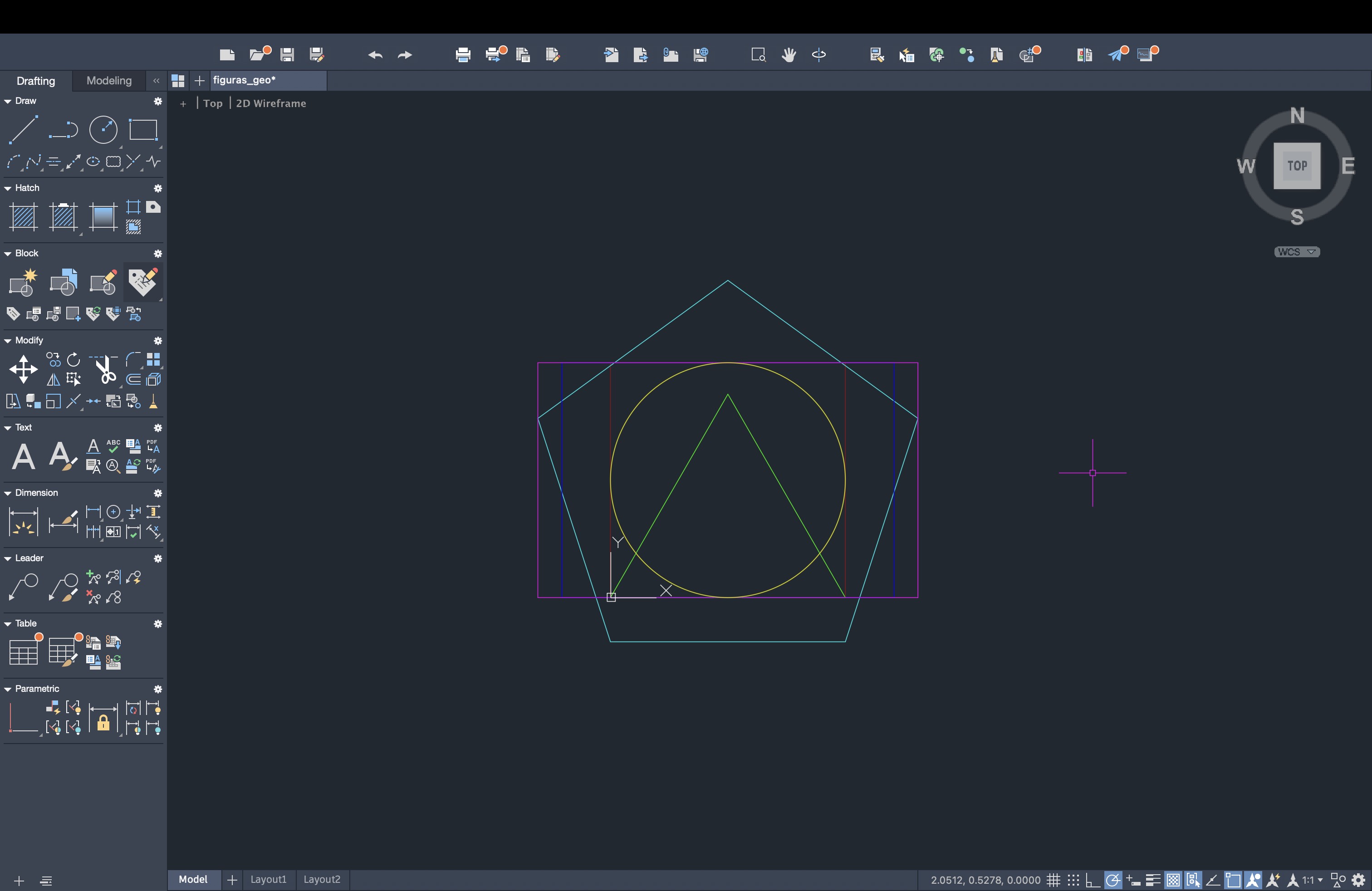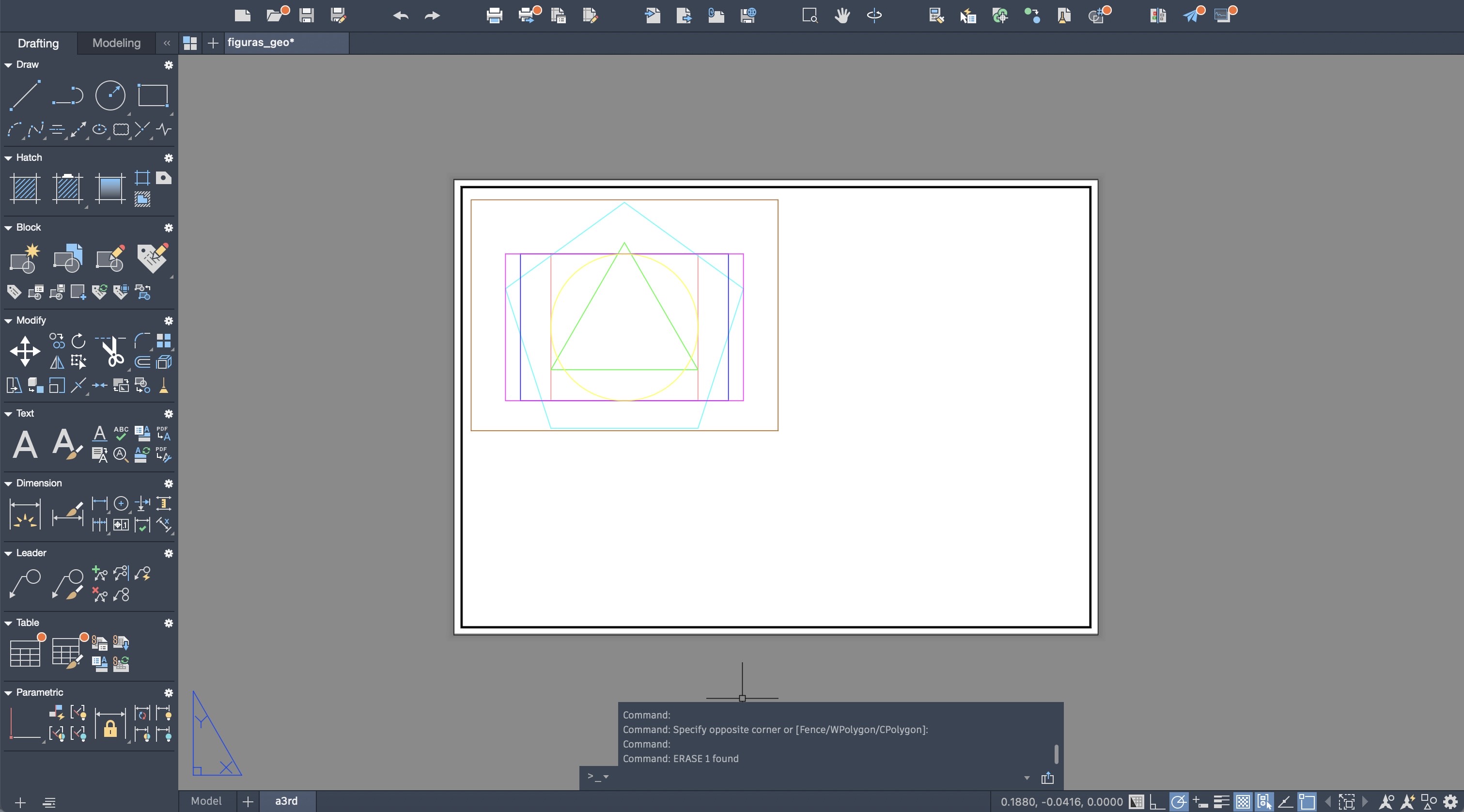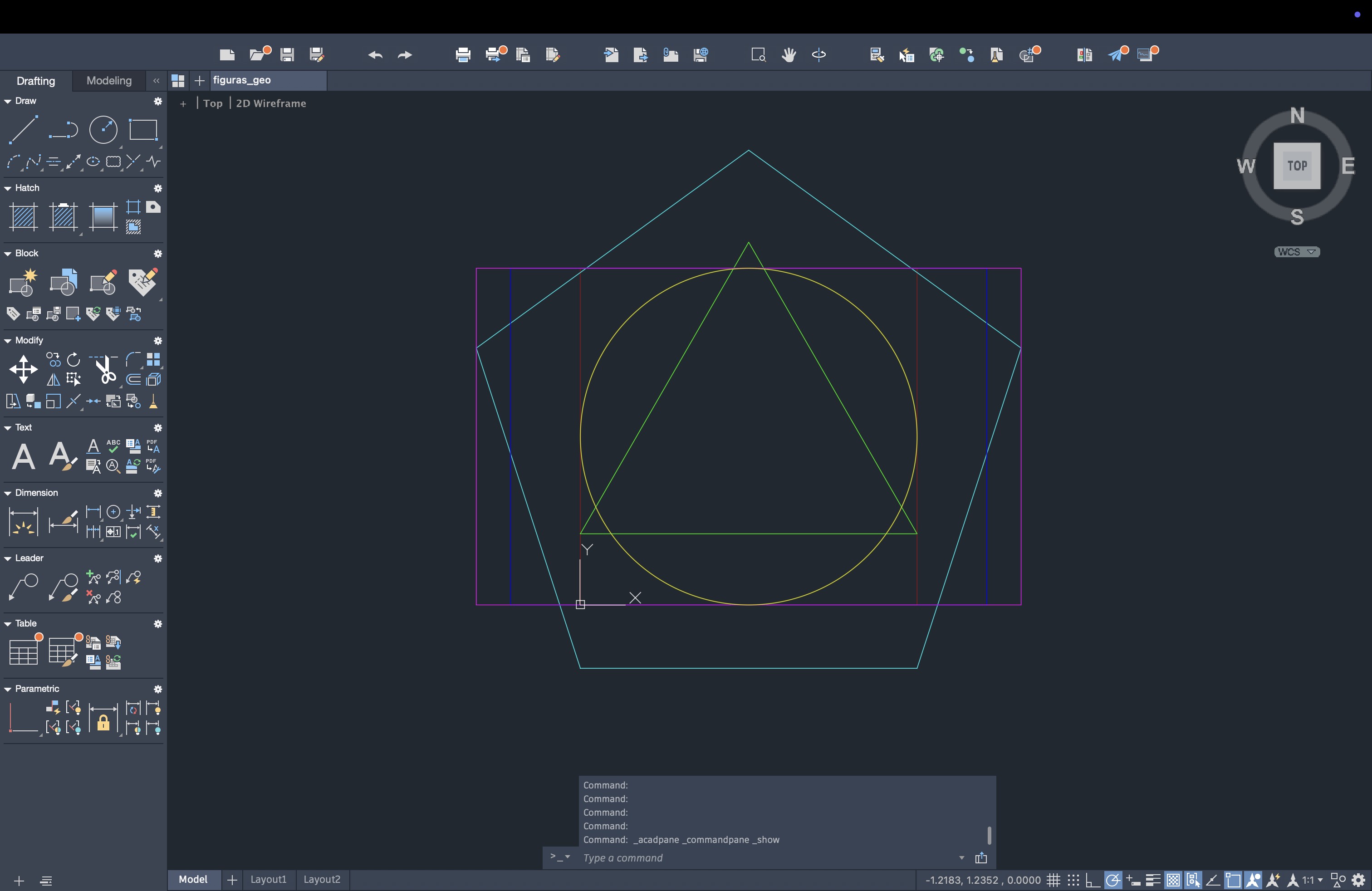 Colocação de quase todas as figuras geométricas com o mesmo centro. Faltou apenas o triângulo porque não tivémos tempo de acabar.