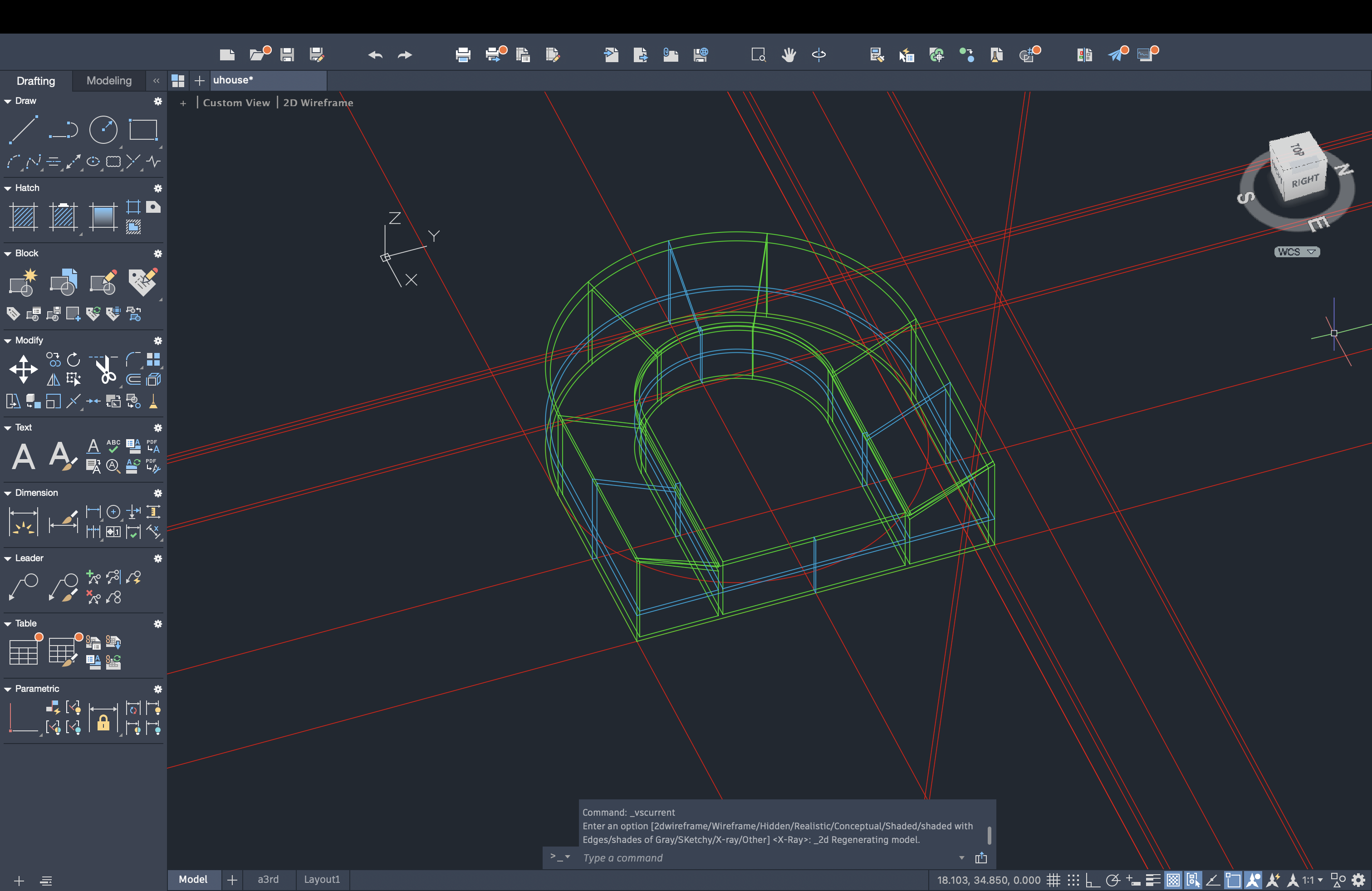 Uso de novos comandos do AutoCad (extrude).