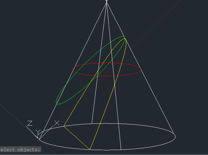 Introdução de figuras cónicas no autocad, figuras fruto da secção de um plano com um ou dois cones.