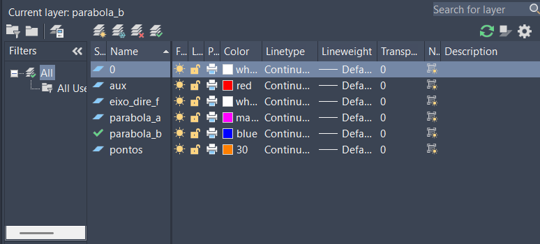 Desenhámos linhas auxiliares que nos ajudassem a encontrar pontos para desenhar as parabolas. Utilizamos duas maneiras de fazer as parabolas.