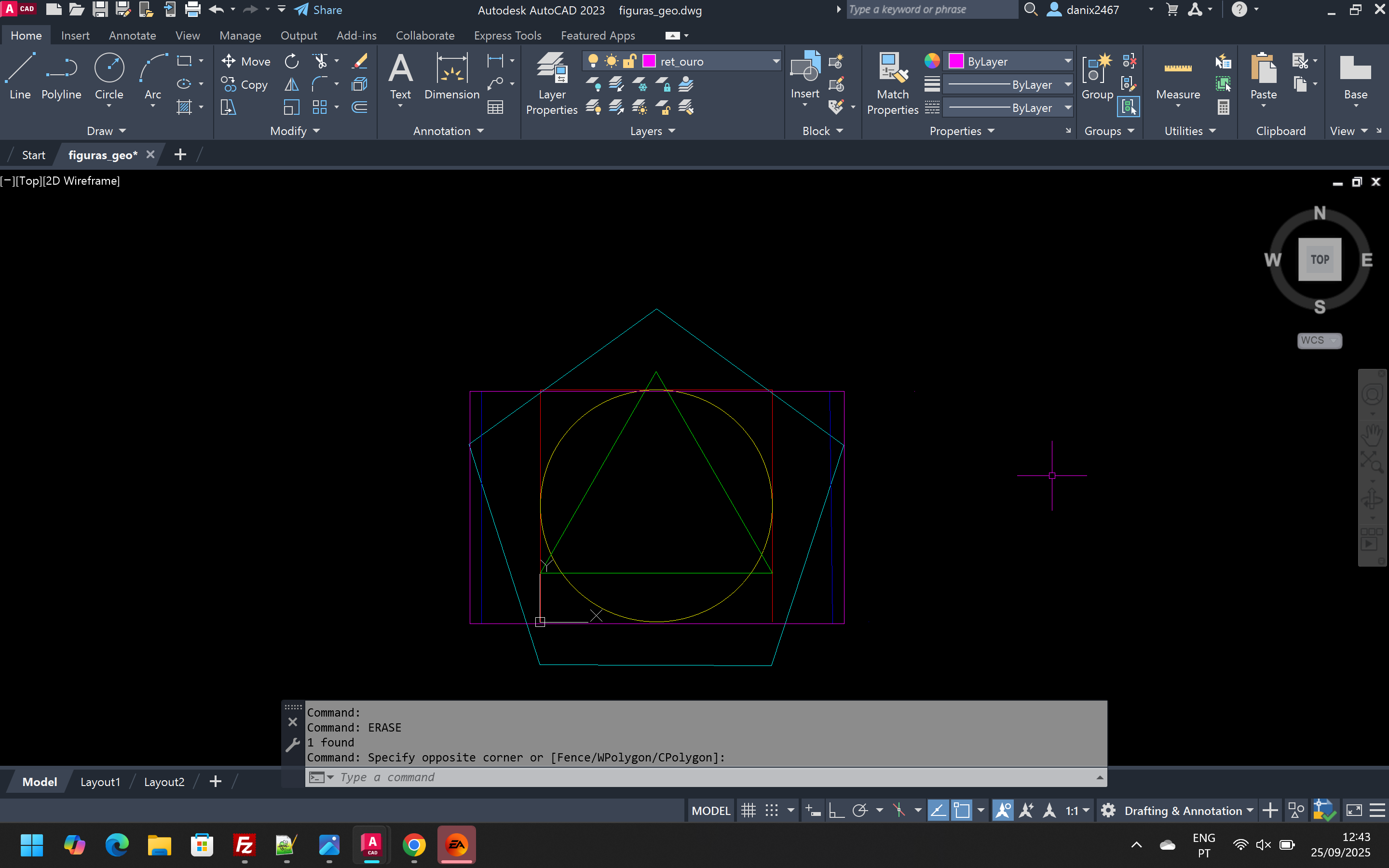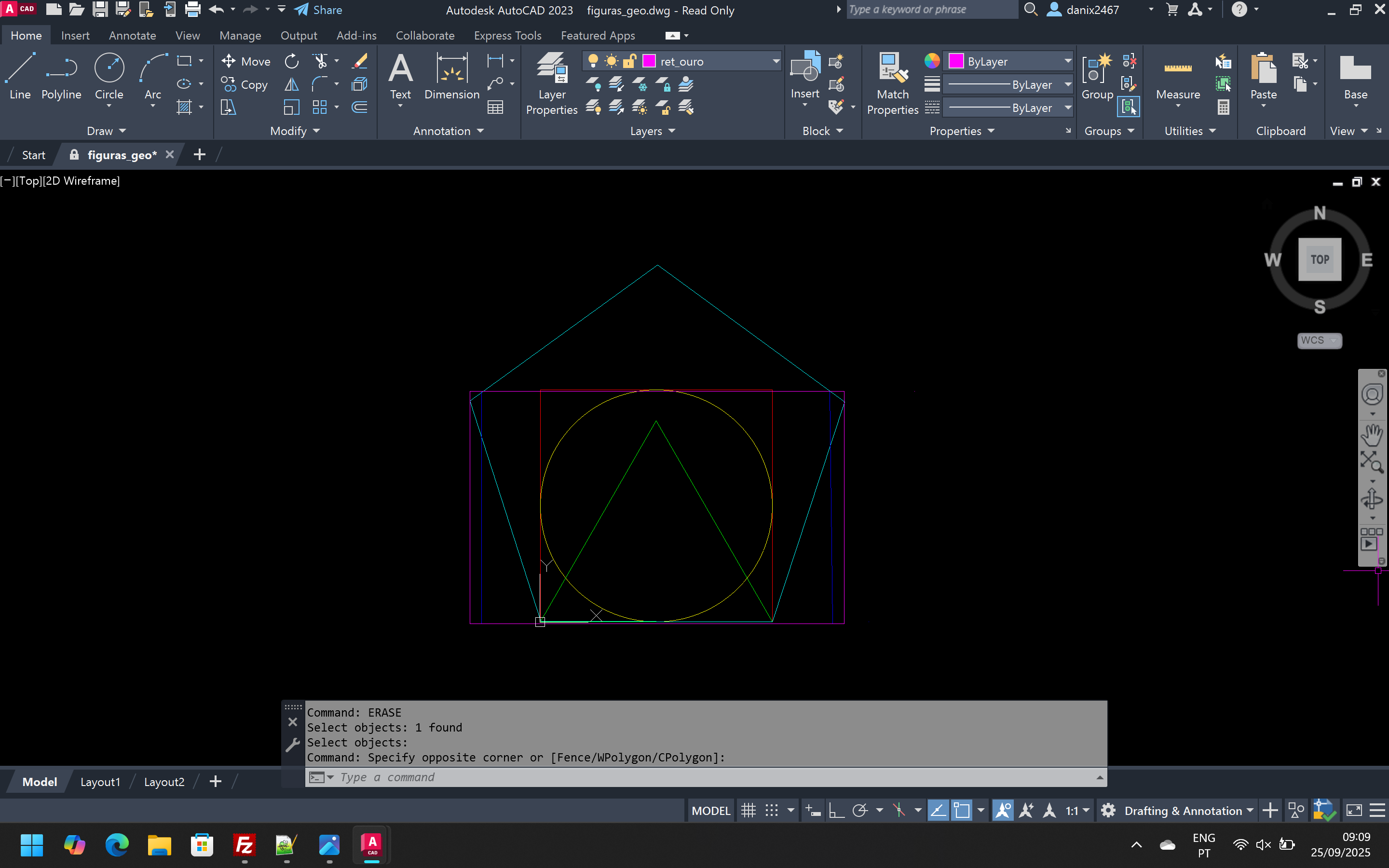 Por último, foi criada outra layer com o nome de janelas, definida com a cor 30, para colocar o exercício das figuras na folha A3.