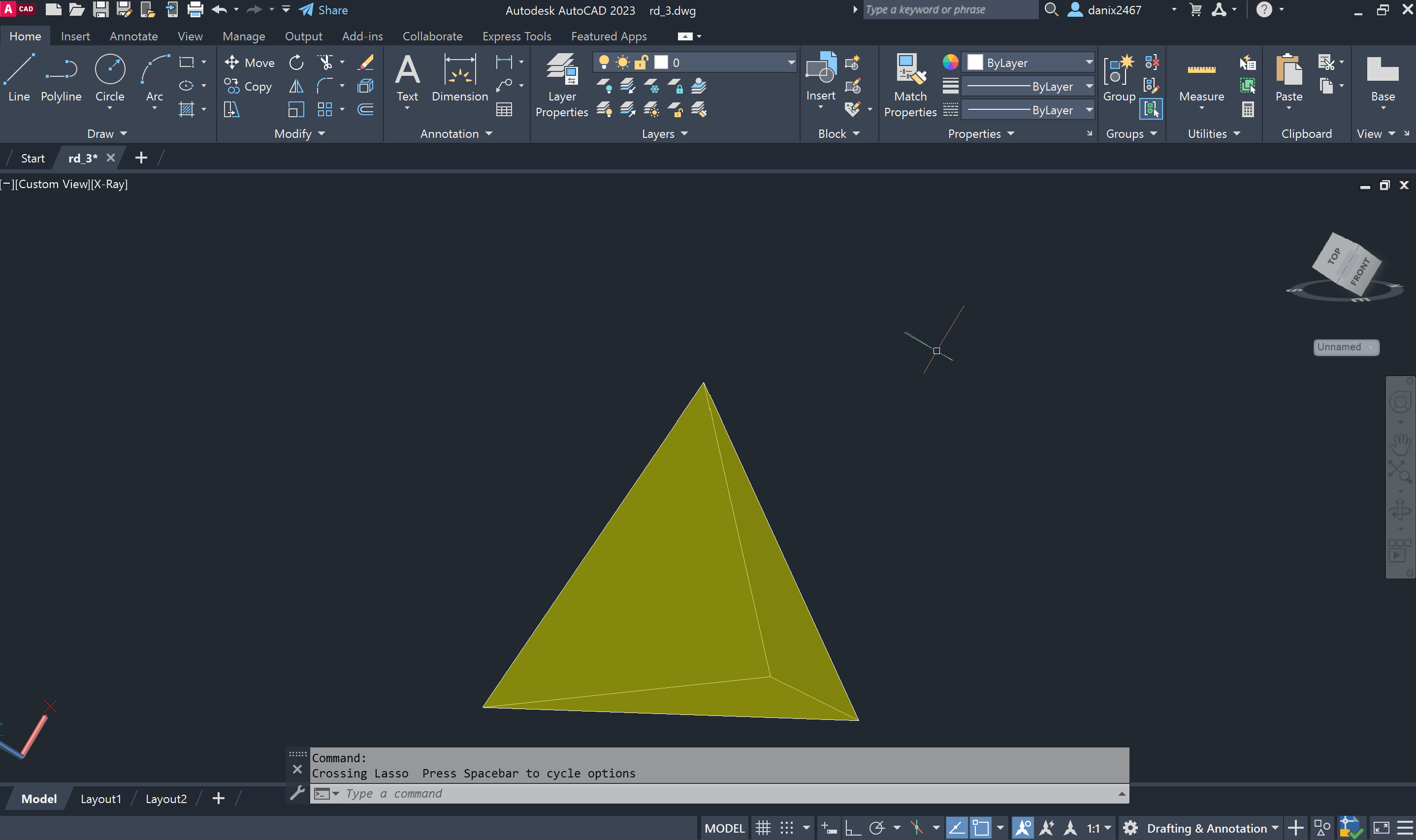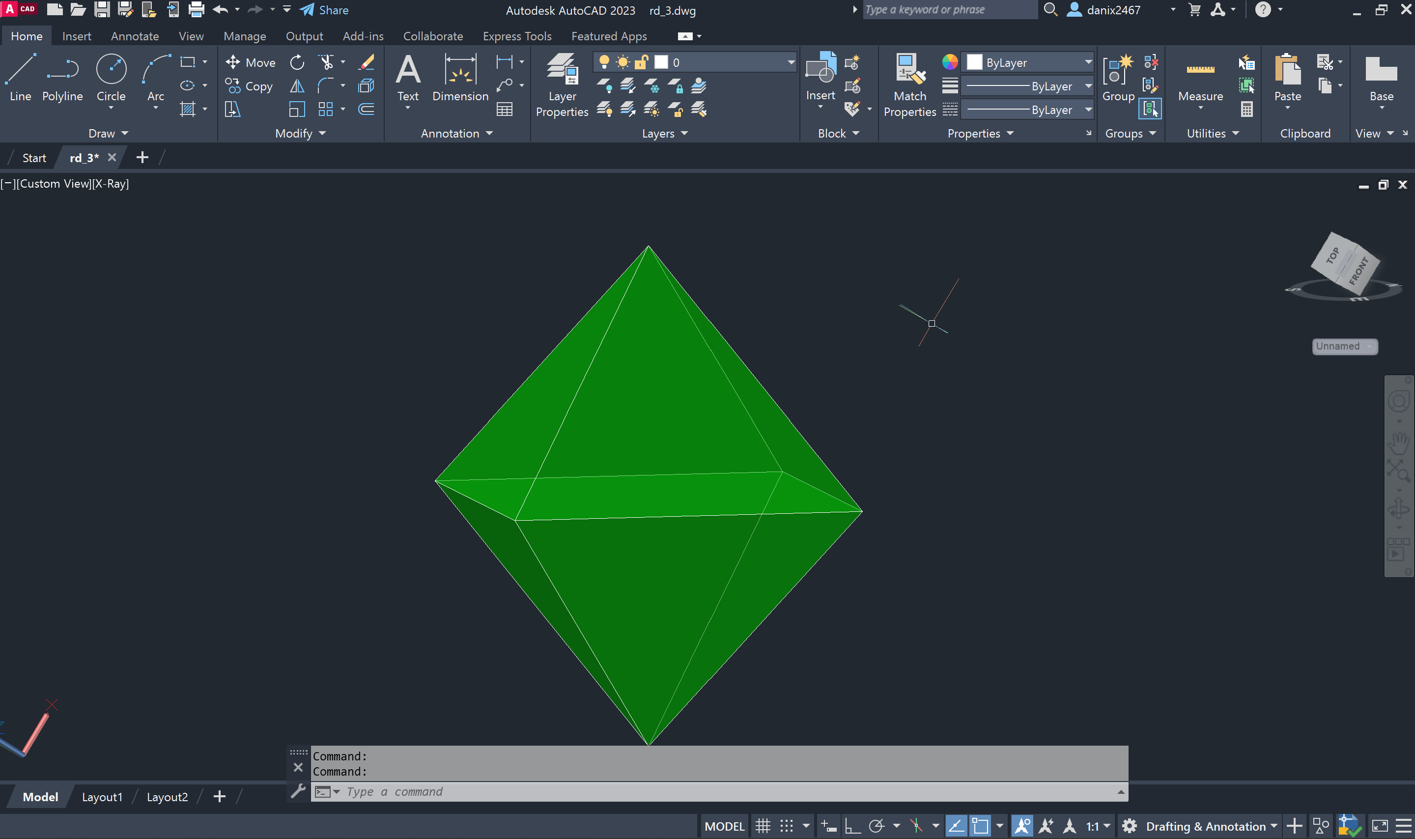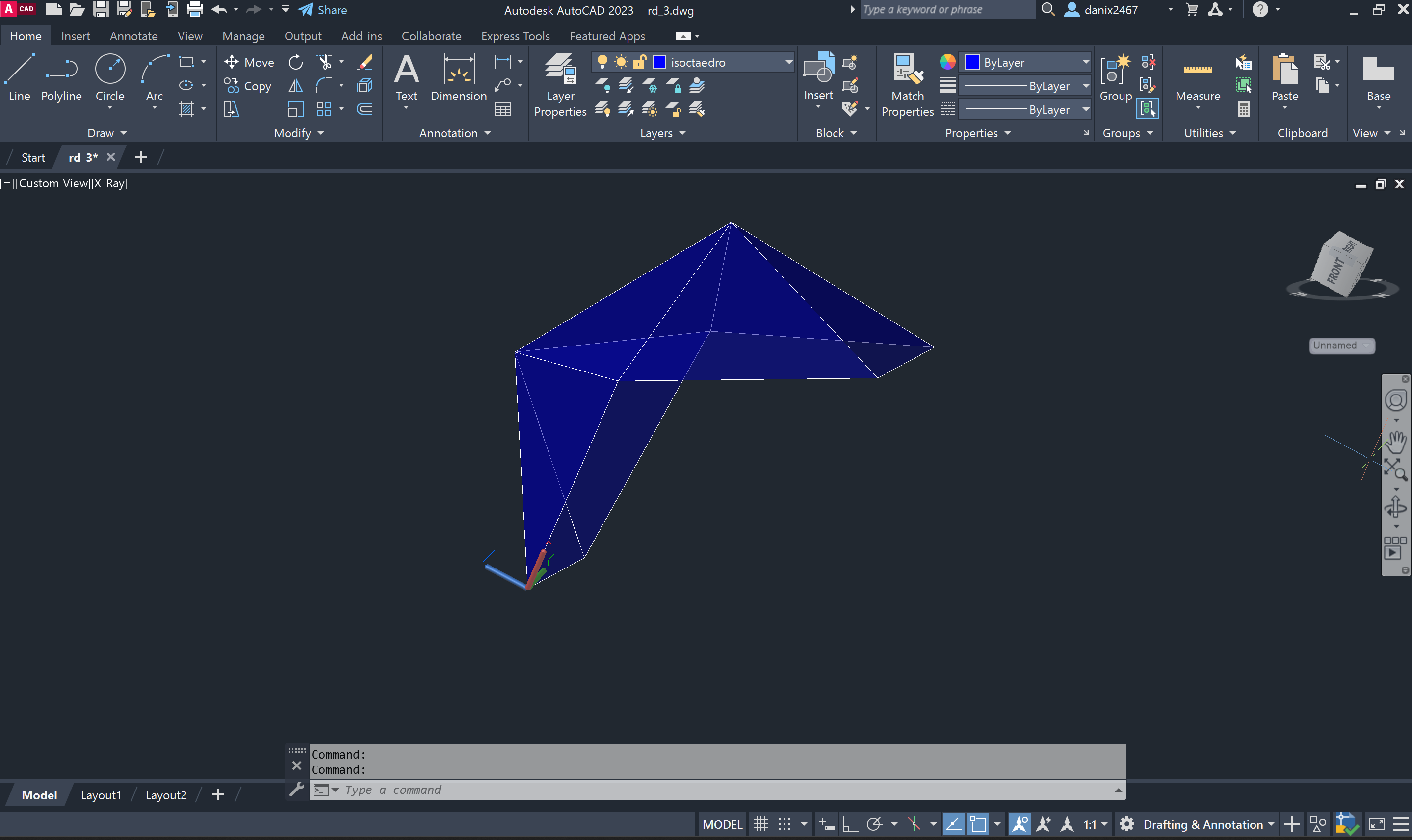 Introdução ao 3D no AutoCAD, com um exercício focado na criação de cinco sólidos: cubo, tetraedro, octaedro, isoctaedro, dodecaedro. Para cada um, foi criada uma nova layer com cores de 1 a 5. Já na construção dos seguintes sólidos foram utilizados os comandos indicados a baixo, porém foram construídos o cubo, dodecaedro, tetraedro e parte do icosaedro.