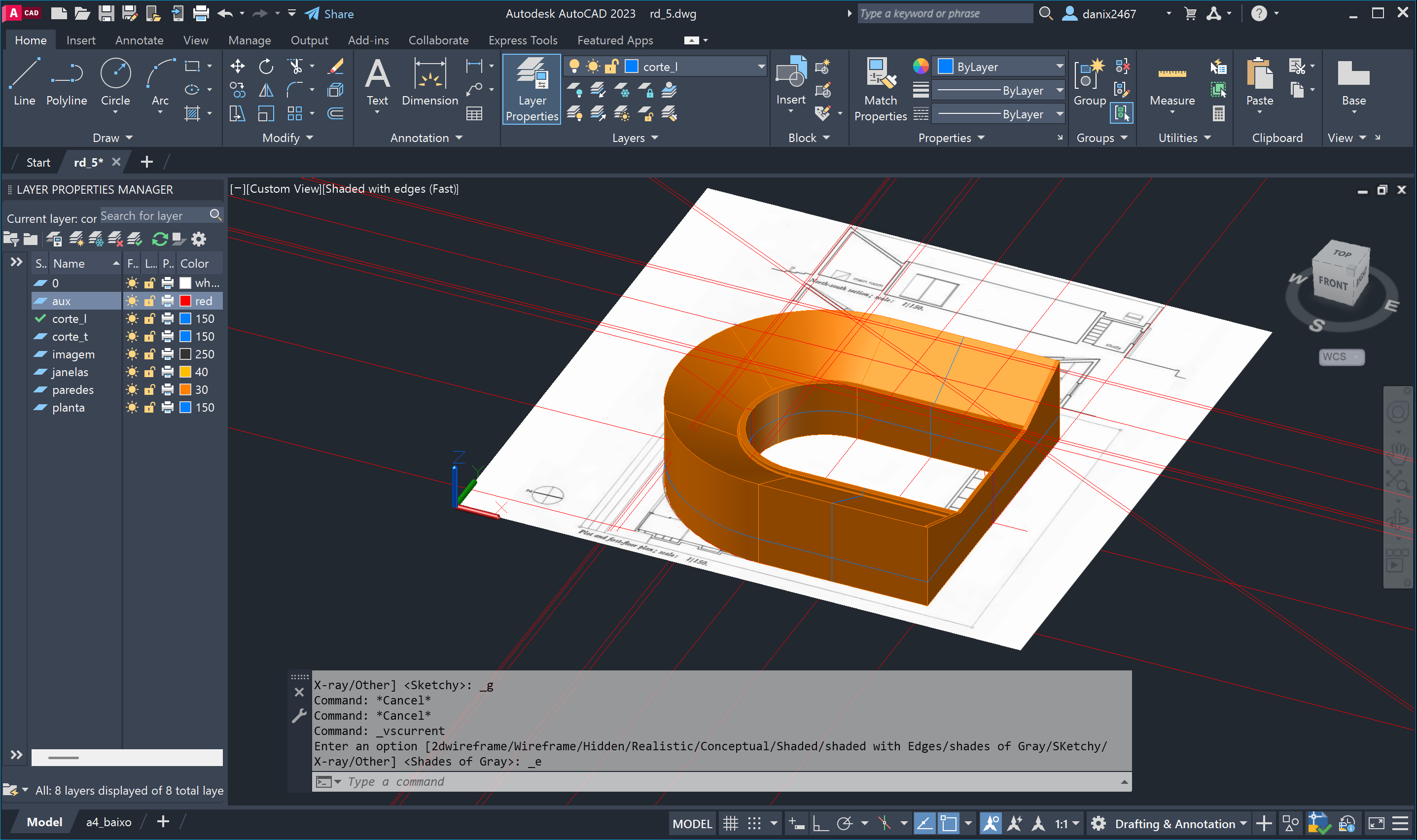 Em seguida, trabalhamos com uma planta e dois cortes da U house de Toyo Ito a escala 1:100 pegamos na planta e nos cortes e atribuímos medidas as expessuras das paredes, criando assim um model em 3D da casa e fazendo uma revisão para a avaliação de dia 30.