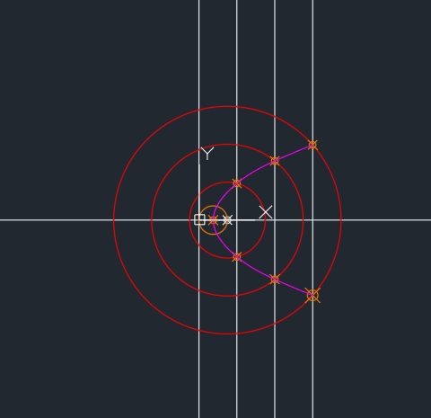 Execução de exercício com construção de duas parábolas, recorrendo a linhas auxiliares para determinar pontos e obter o traçado correto das parábolas