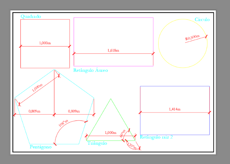 Concluímos o trabalho legendando as figuras e através da ferramenta "dim" marcamos as suas medidas. Alteramos também a espessura das linhas, consoante as cores usadas.