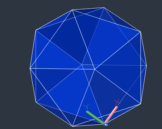 Concluiu-se a construção do icosaedro, recorrendo aos comandos UCS (selecionando 3 pontos), ERASE e SURFSCULPT.
