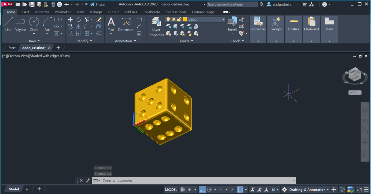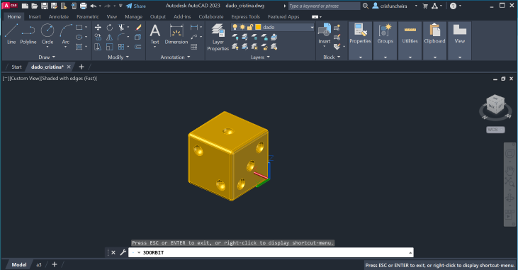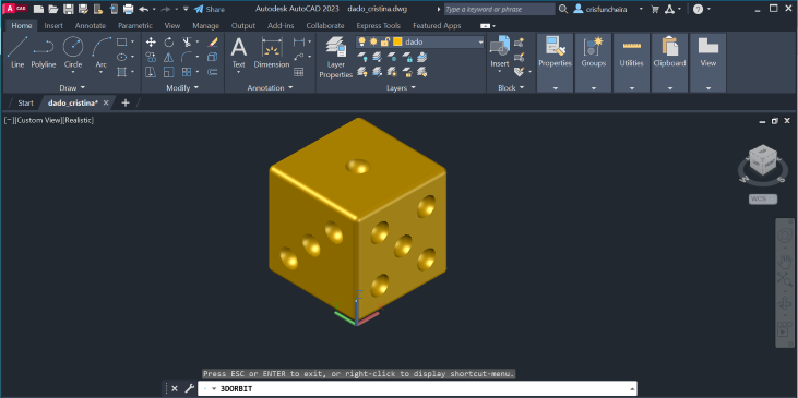Representação de um cubo/dado, com auxilio dos comandos BOX, ALIGN, COPY, SUBTRACT, FILLET