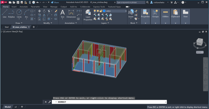 Neste exercício tambem se representou uma figura, gerada através de comandos como SPLINE e EXTRUDE.