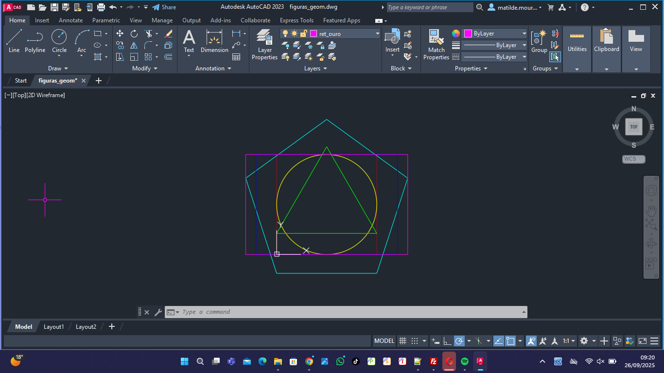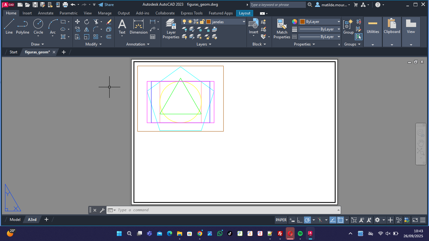 Continuação do exercício das formas geométricas, criando cada uma em diferentes camadas e por fim colocando todos com o mesmo centro.