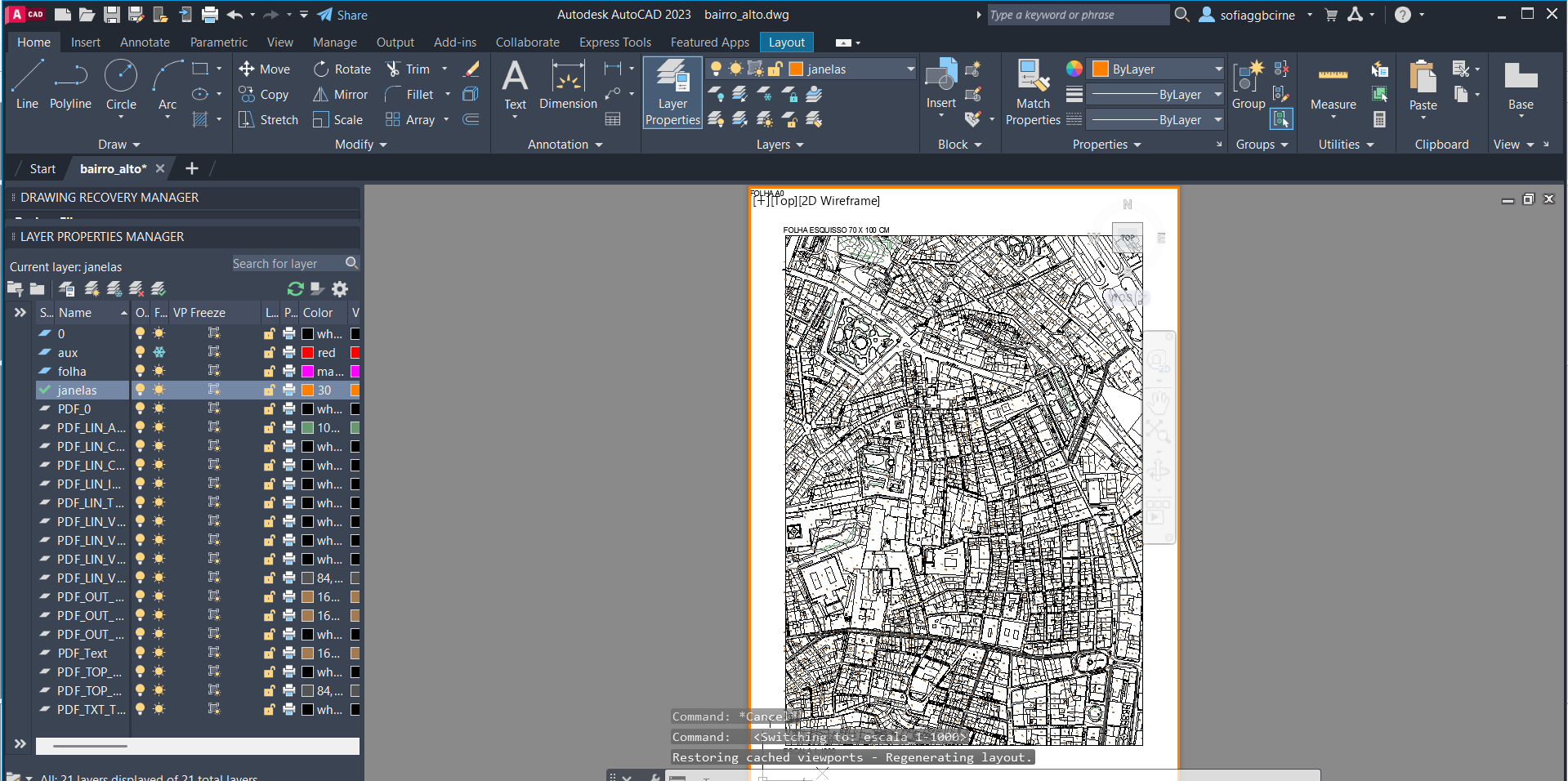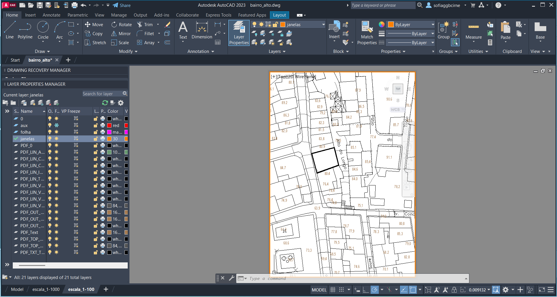 Com a planta já escalada, foram criados 2 novos layouts: 1/1000 e 1/100.