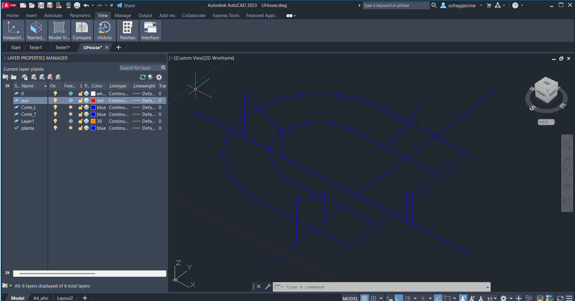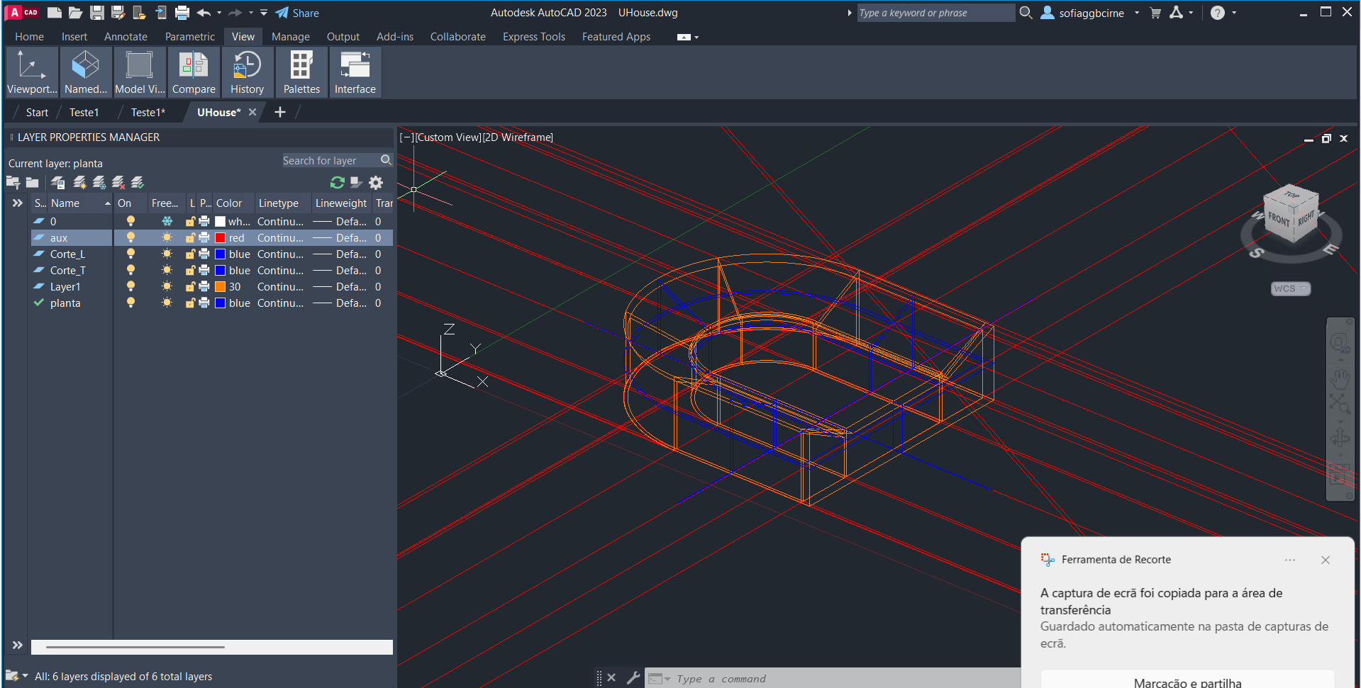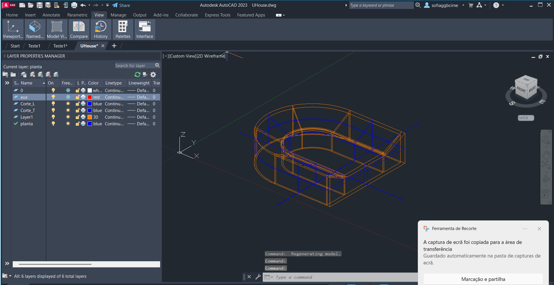 Congelámos todas as outras layers exceto as layers da parede e passámos para uma visualizaÇÃO 3D com ajuda do comando 3DORBIT.