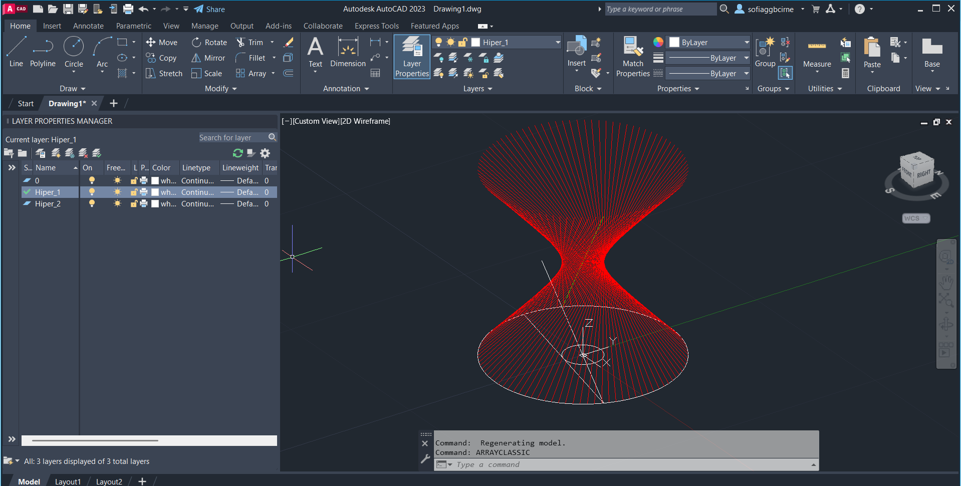 Command: arrayclassic para finalizar a hiperbolóide.
