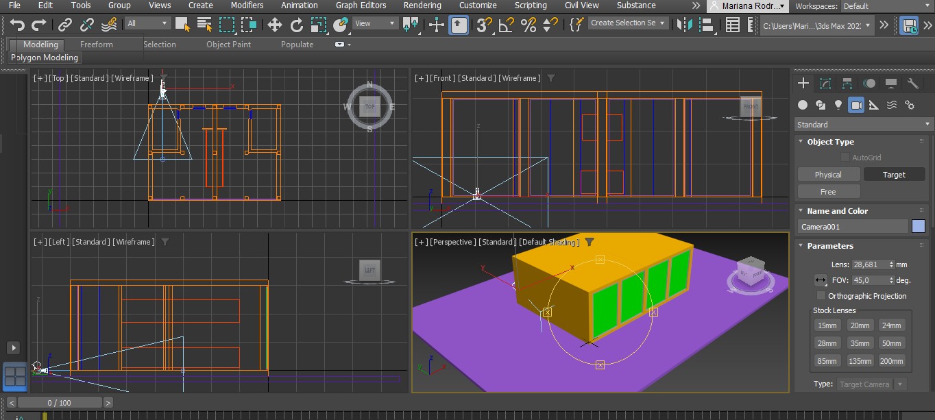 Introdução de "cameras" que permitem olhar para a volumetria de diferentes pontos de vista,através da ferramenta CAMERAS.