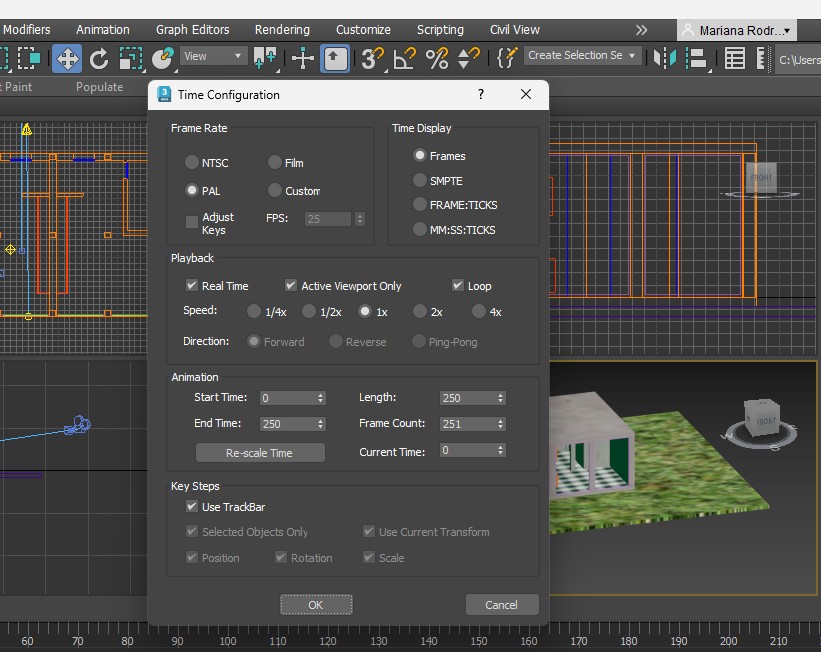 Inicio do estudo de uma animação, mudando através da ferramenta TIME CONFIGURATION.