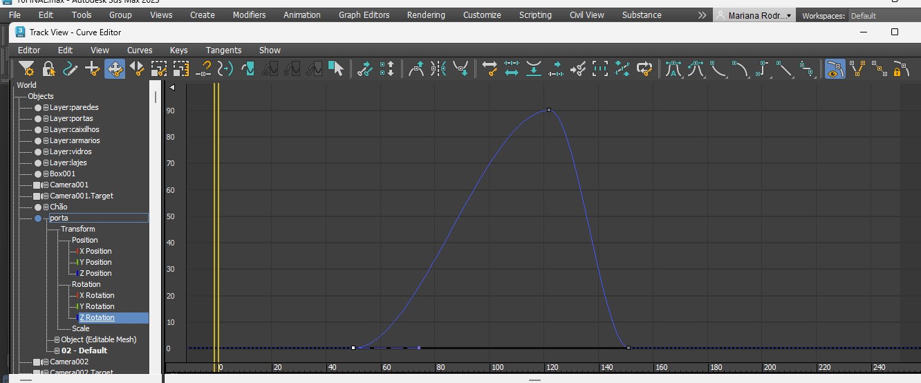 Introdução de elementos sonoros, como uma porta a abrir, através da ferramenta GRAPH SHEETS E DOPE SHEET.