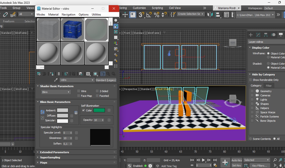 e MATERIAL EDITOR (ferramenta que serve de painel de criação e controlo de materiais do 3ds Max).