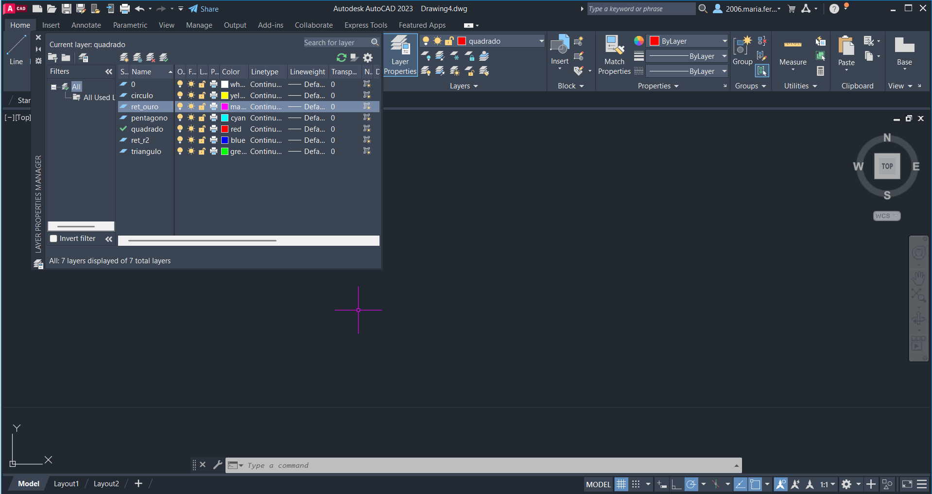 A função layer, pode ser utilizada para dividir os diferentes desenhos, por exemplo se for um desenho de uma casa, poderia-se ter uma layer para cada nível diferente.
