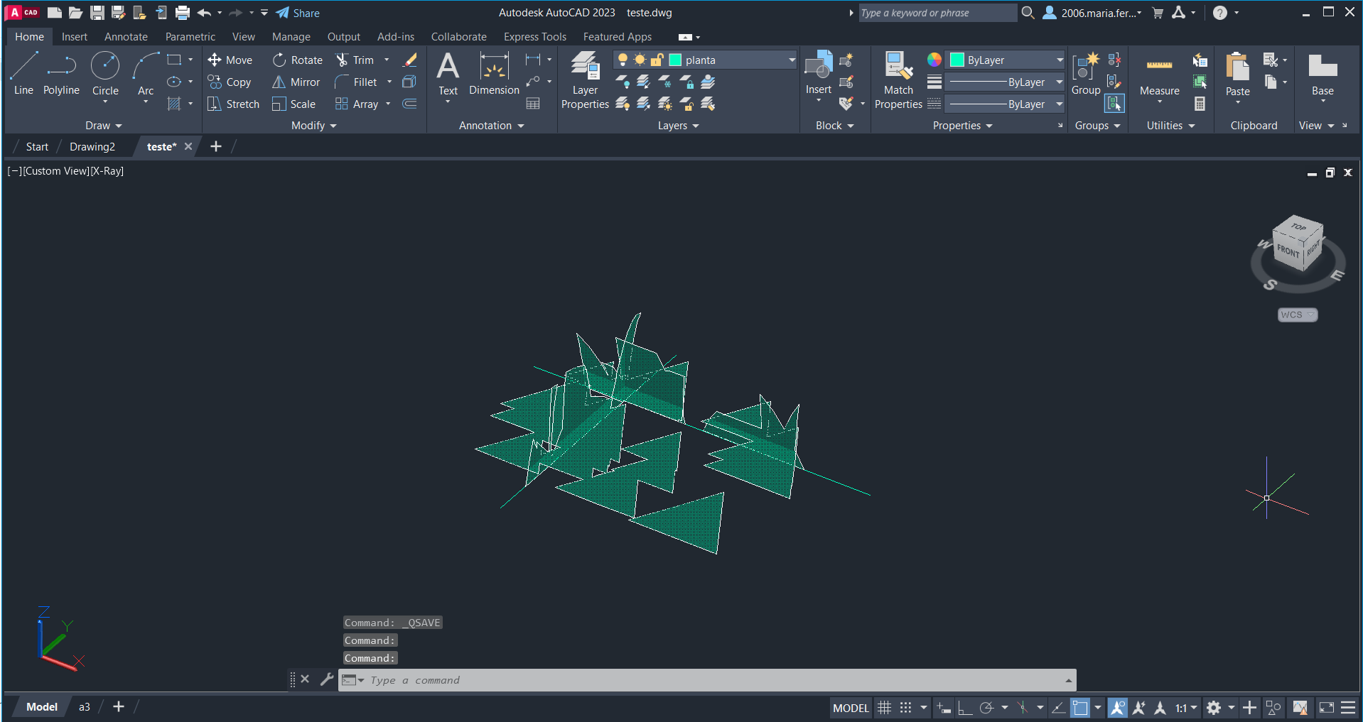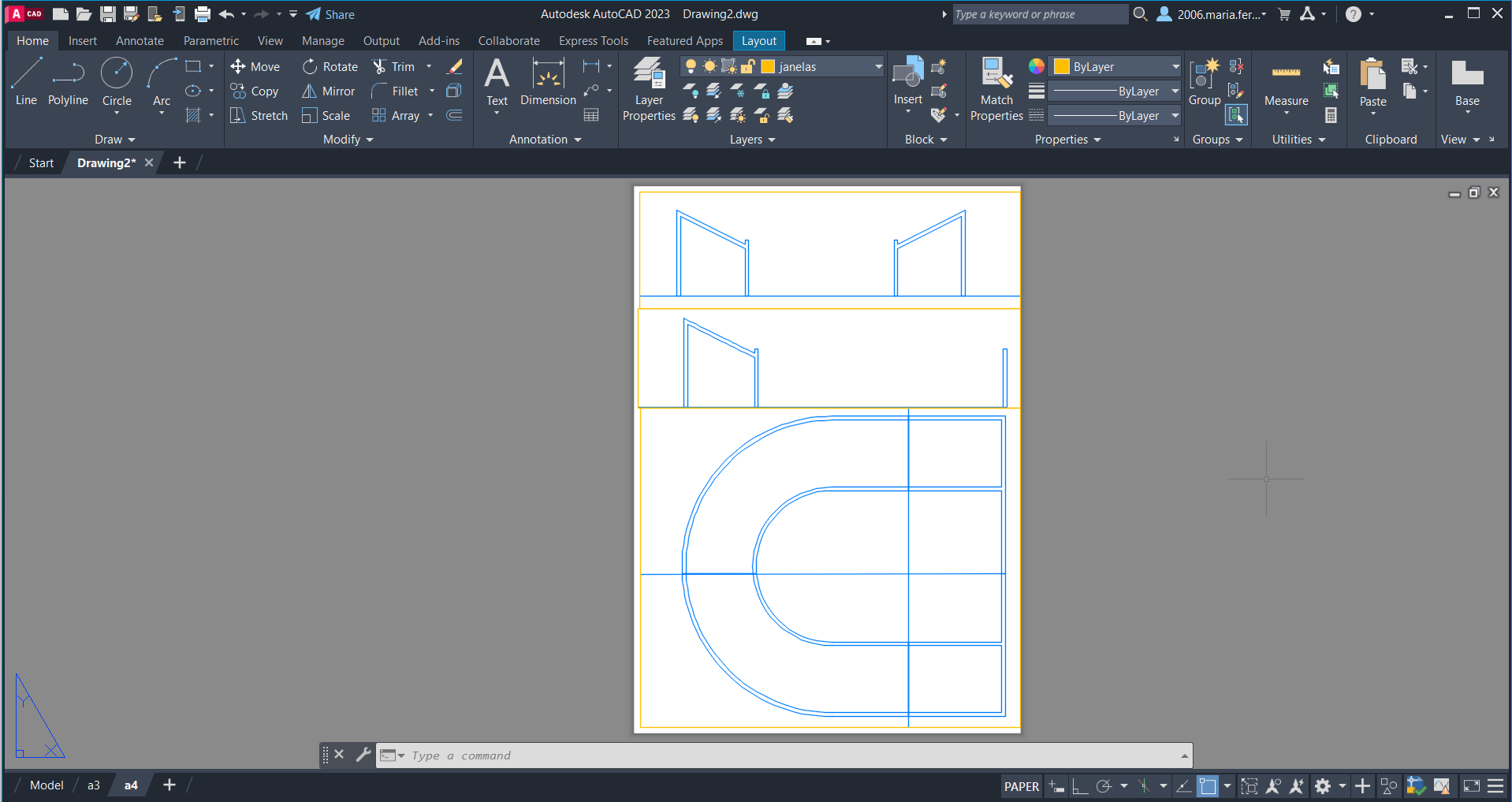 Continuação do exercício da aula anterior, dispondo 2 cortes e uma planta numa folha A4.