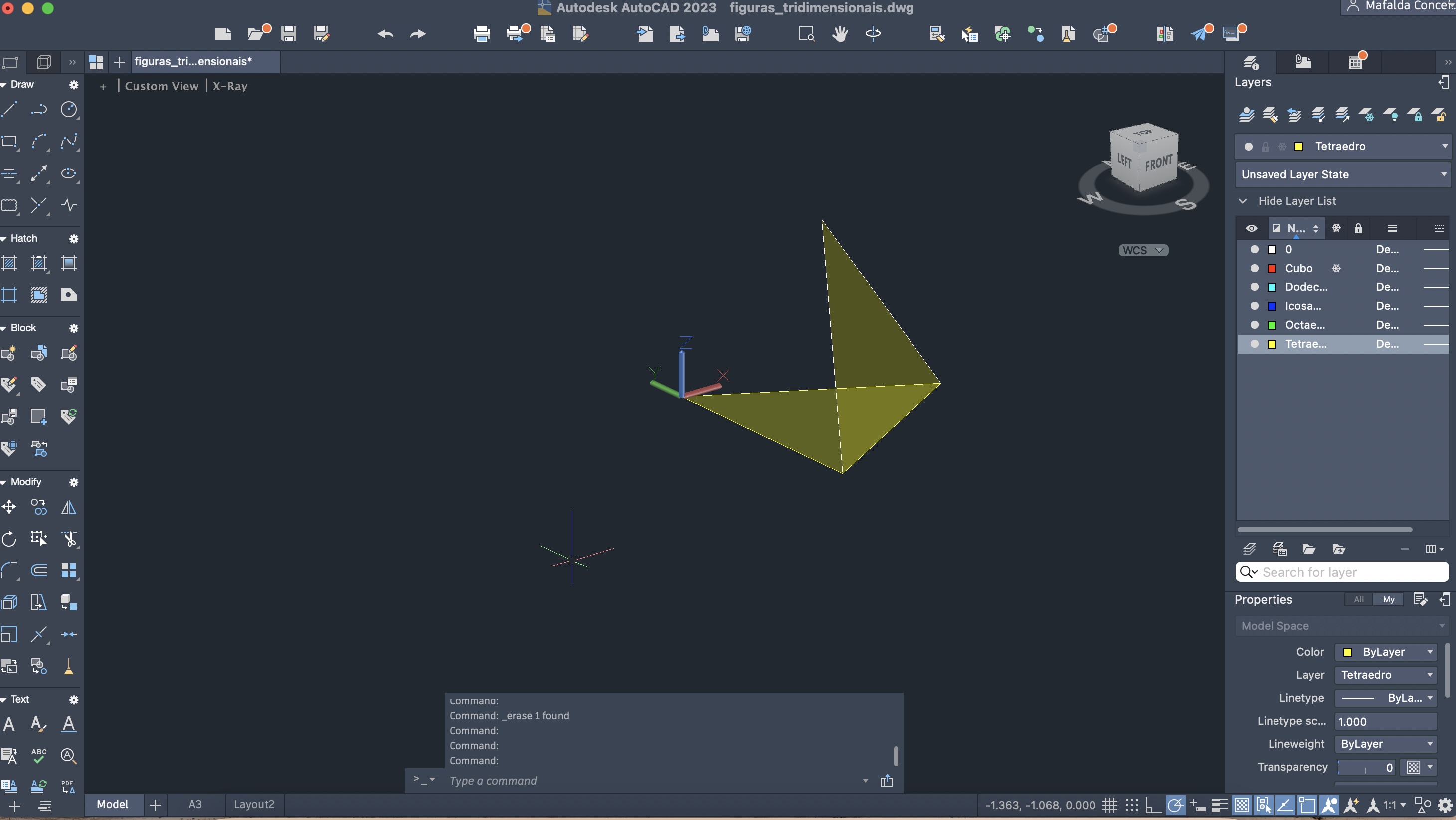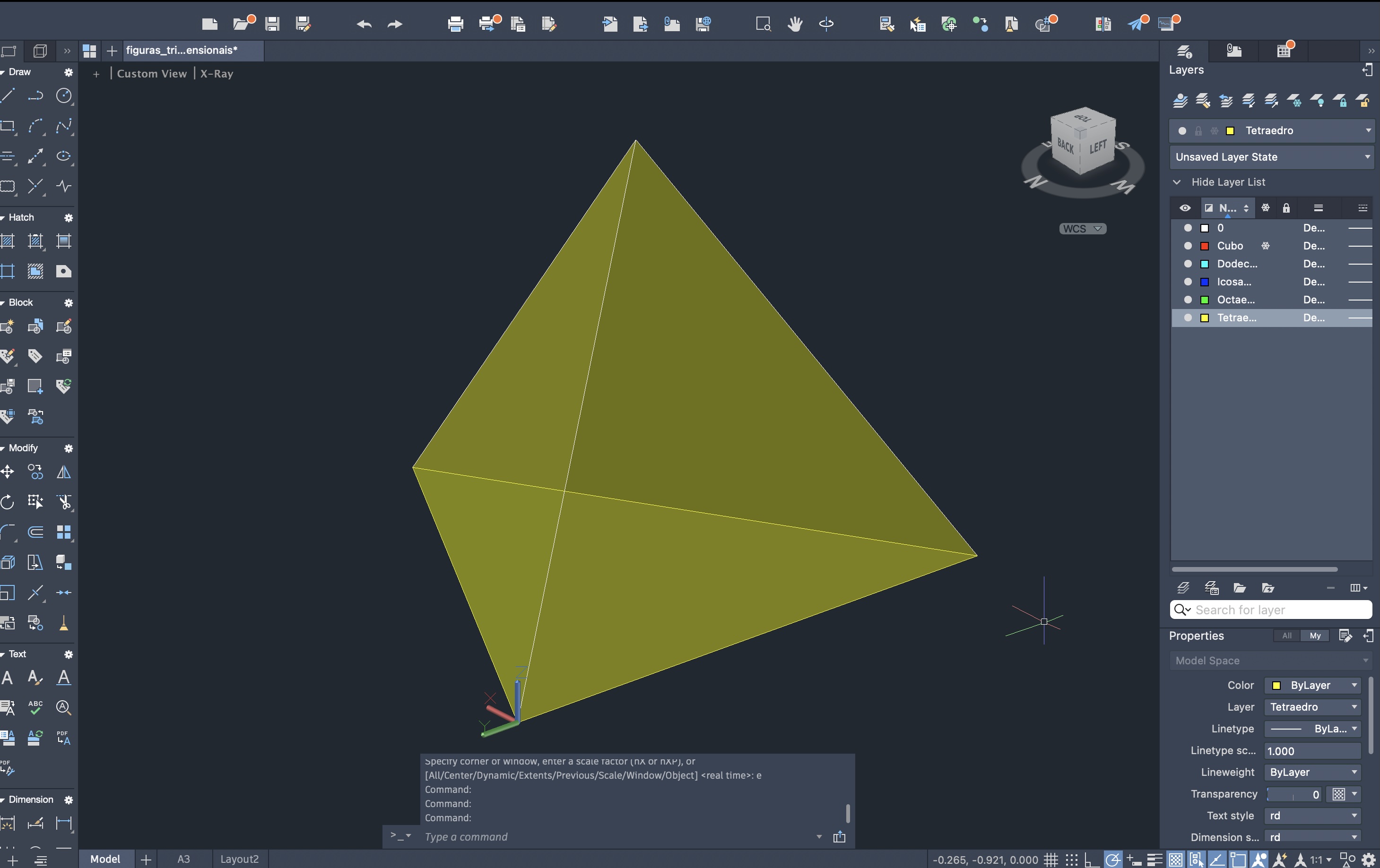 Criação da planificação do tetraedro com a utilização dos comandos: POLYGON, REGION, MIRROR, UCS, LINE, CIRCLE e 3DPOLY.
