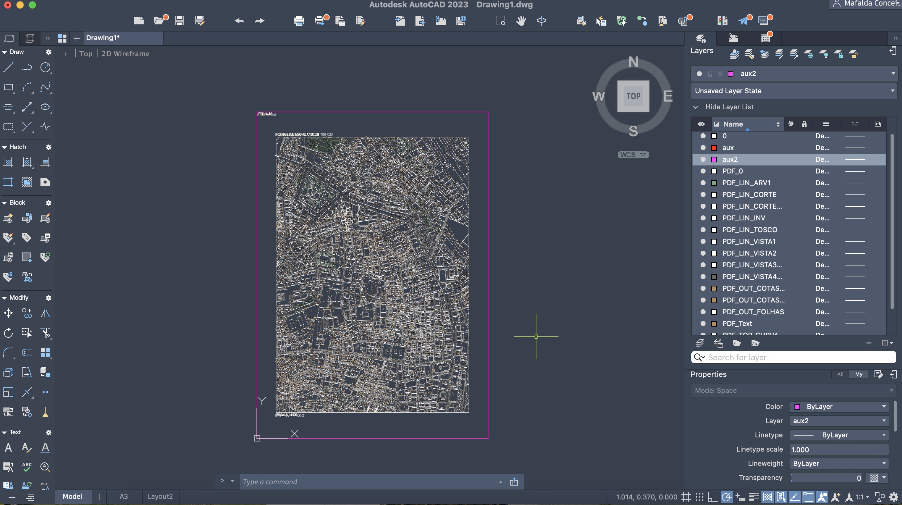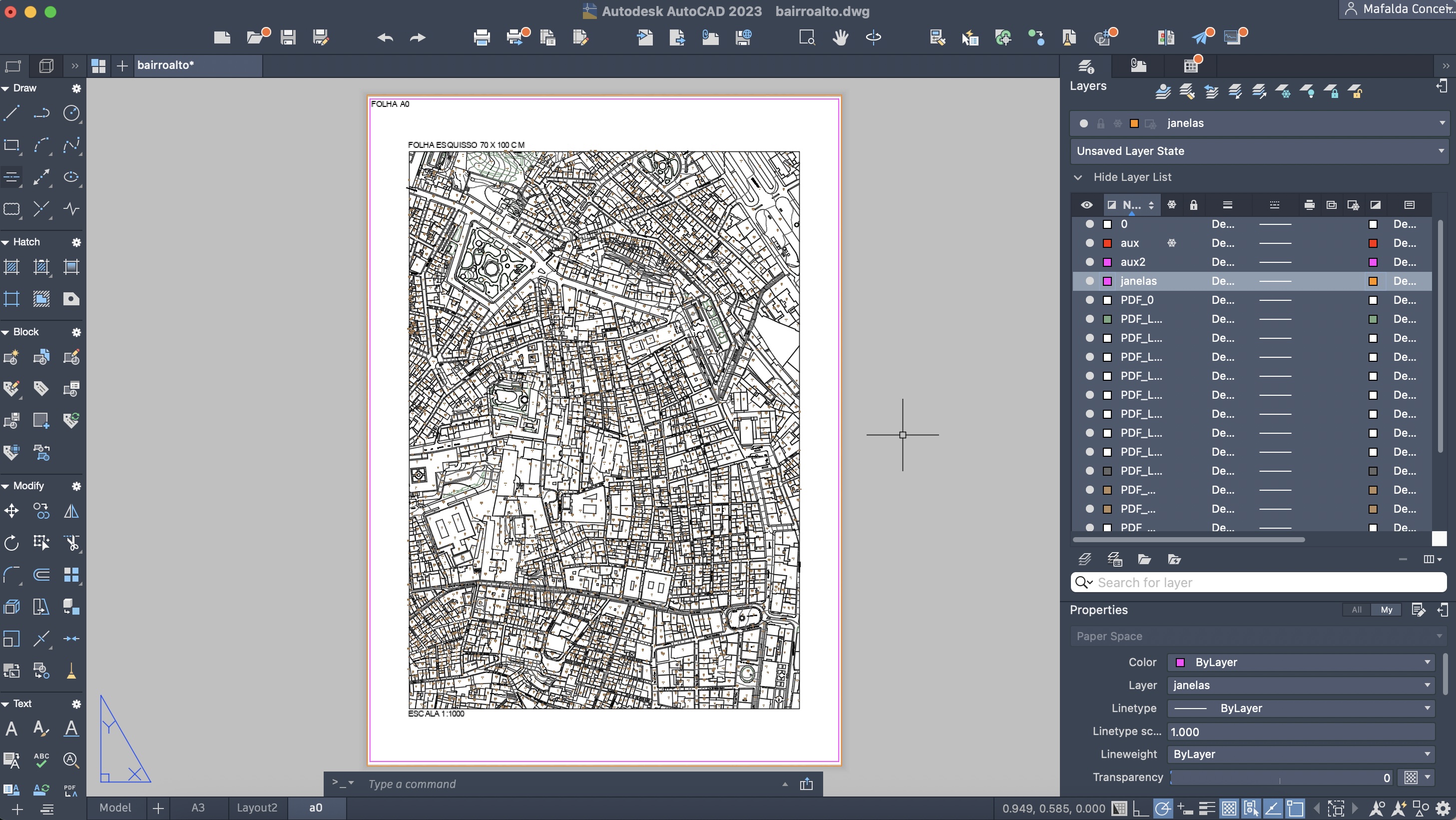 Início de um novo exercício de importação e manuseamento de uma planta, relacionada com a disciplina de Projeto, num novo ficheiro AutoCAD.