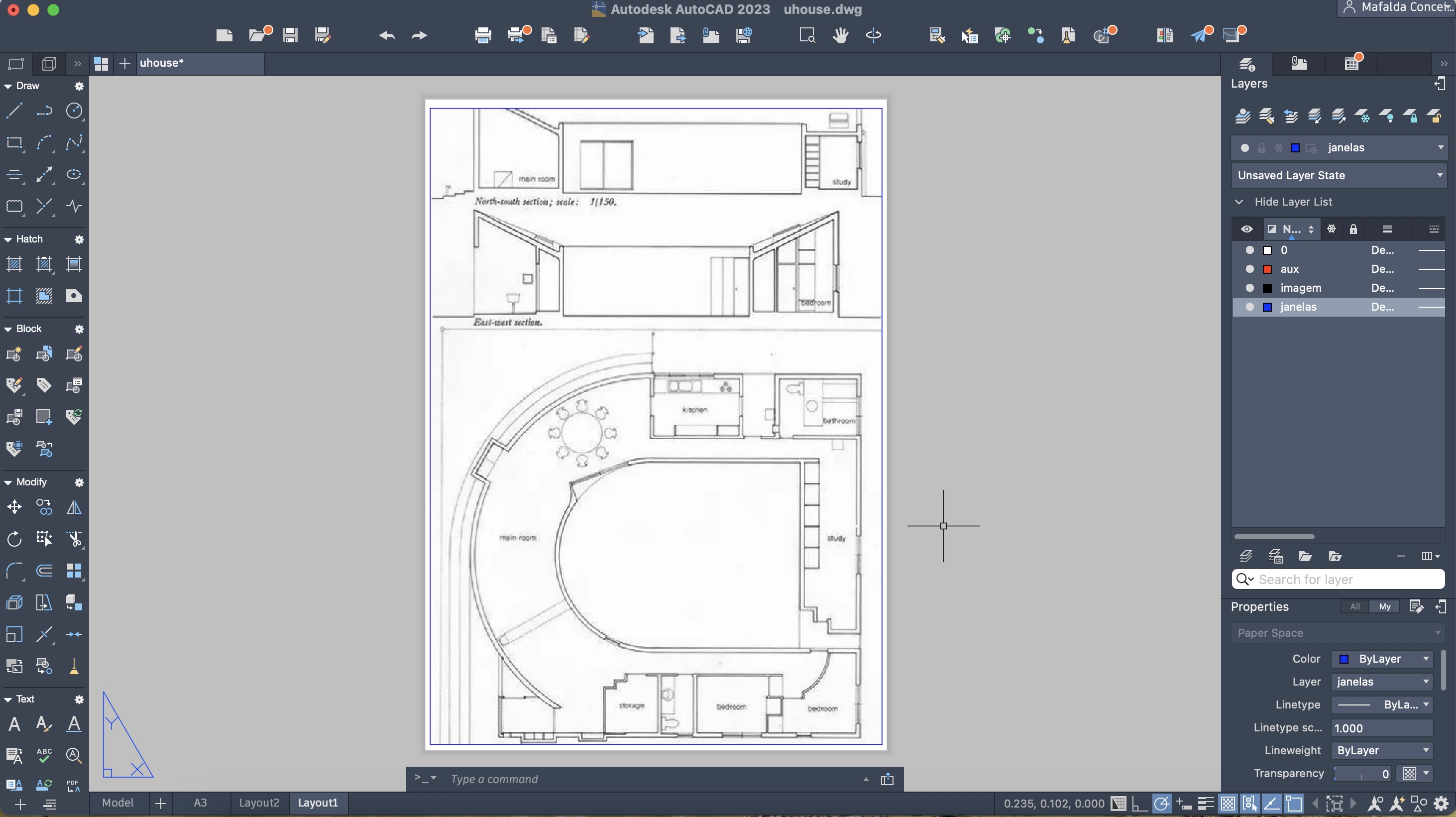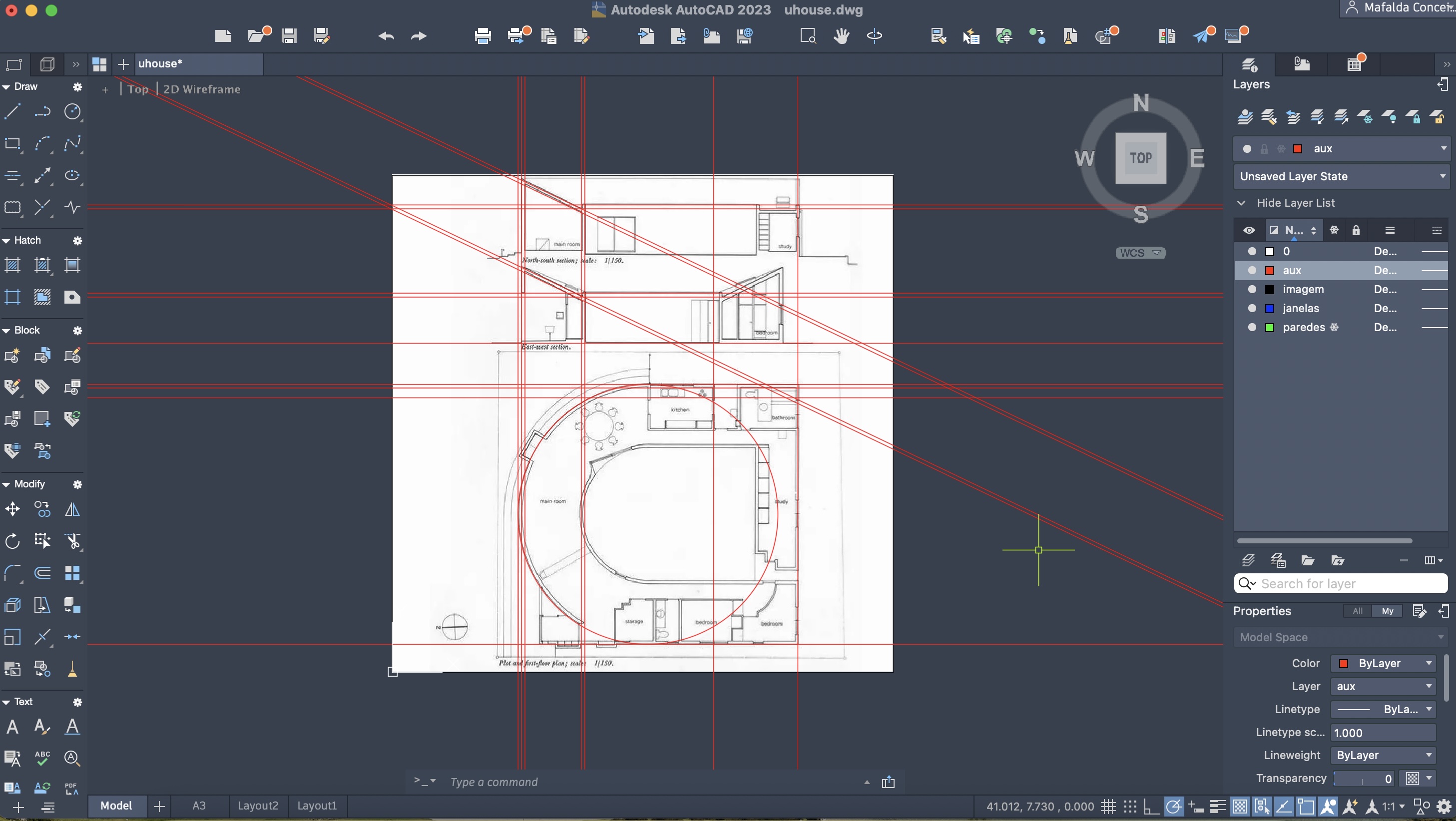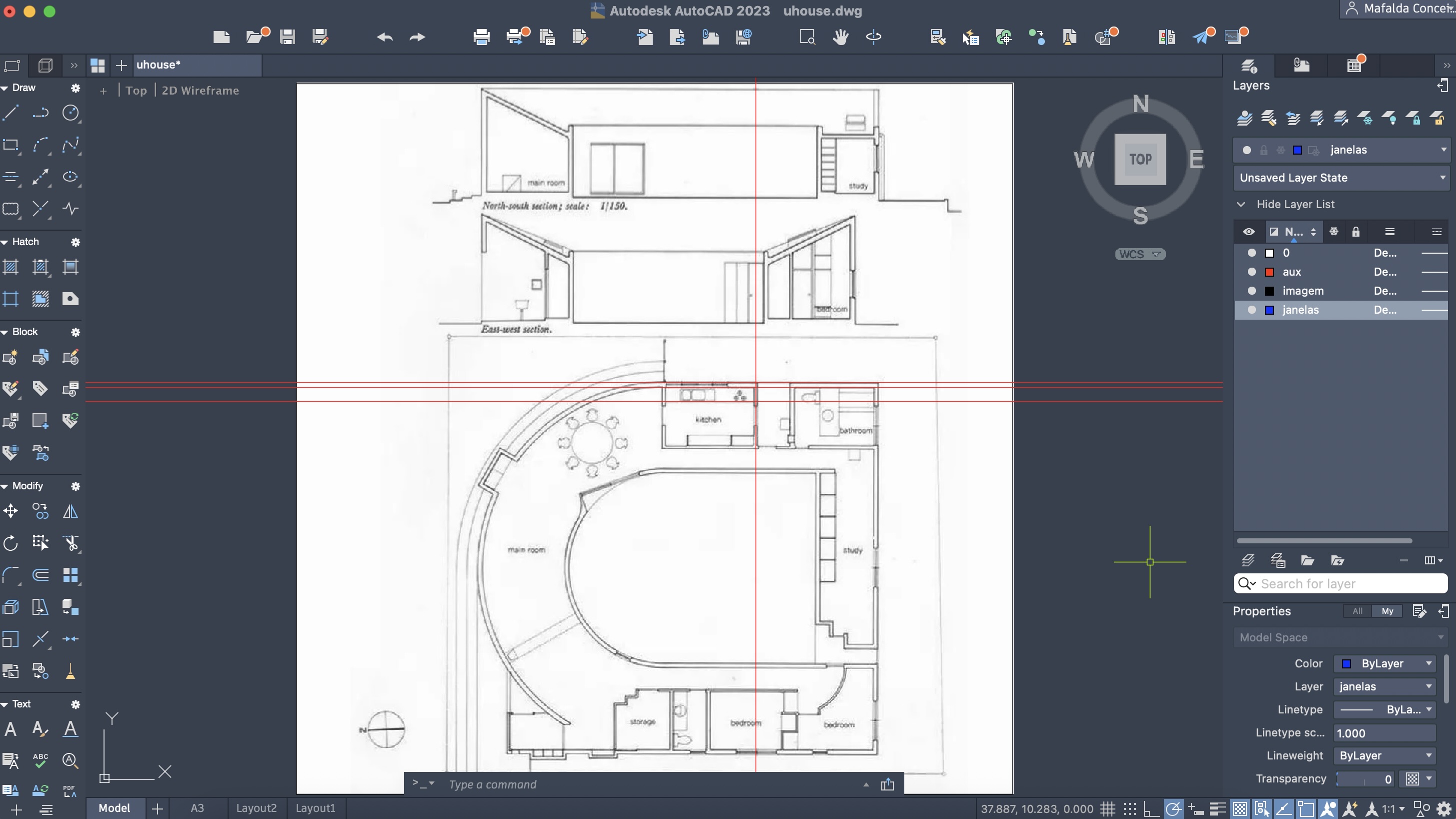 Início de um novo exercício de recriação de uma projeto do arquiteto Toyo Ito, denominada U HOUSE , num novo ficheiro AutoCAD.