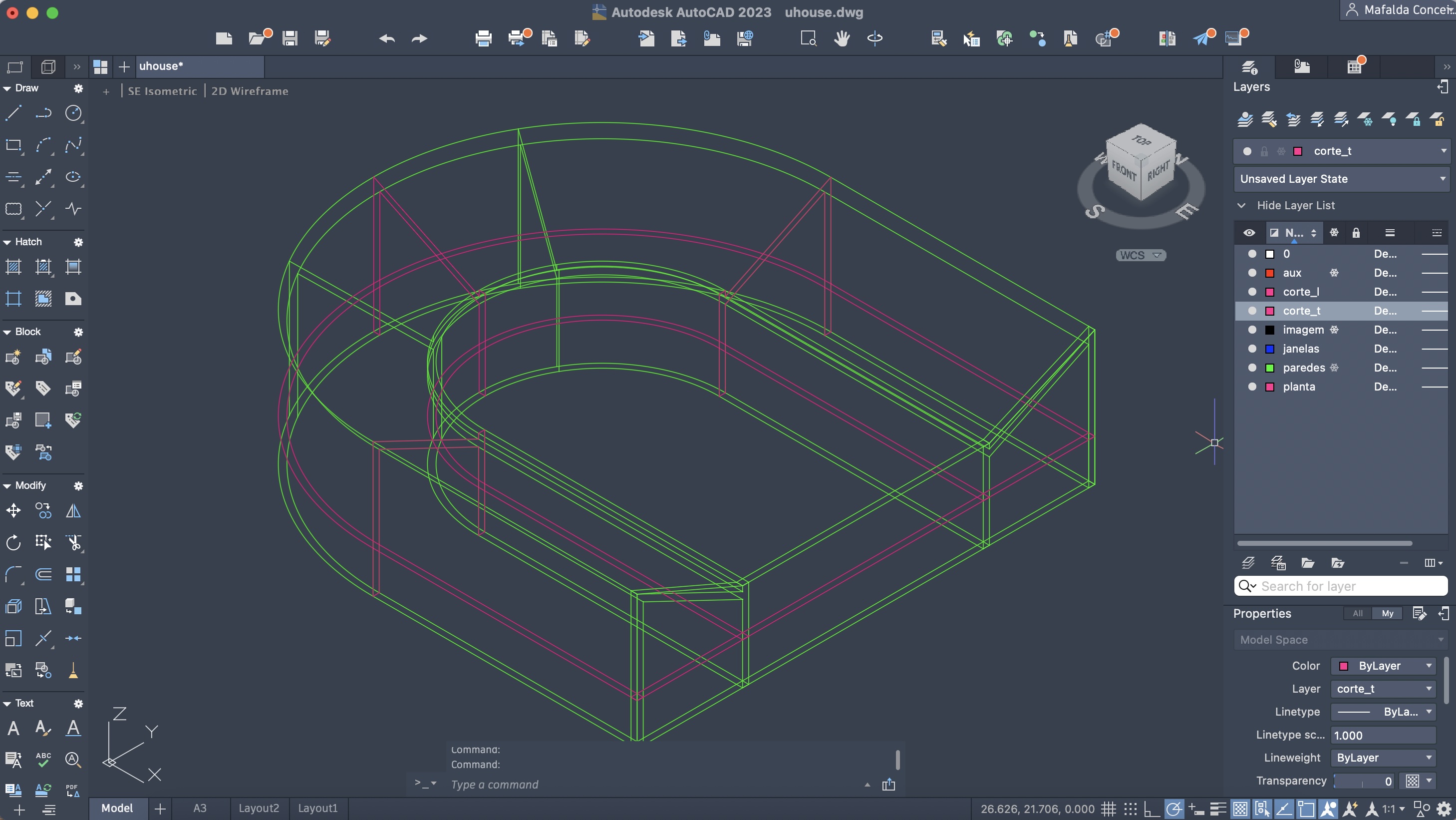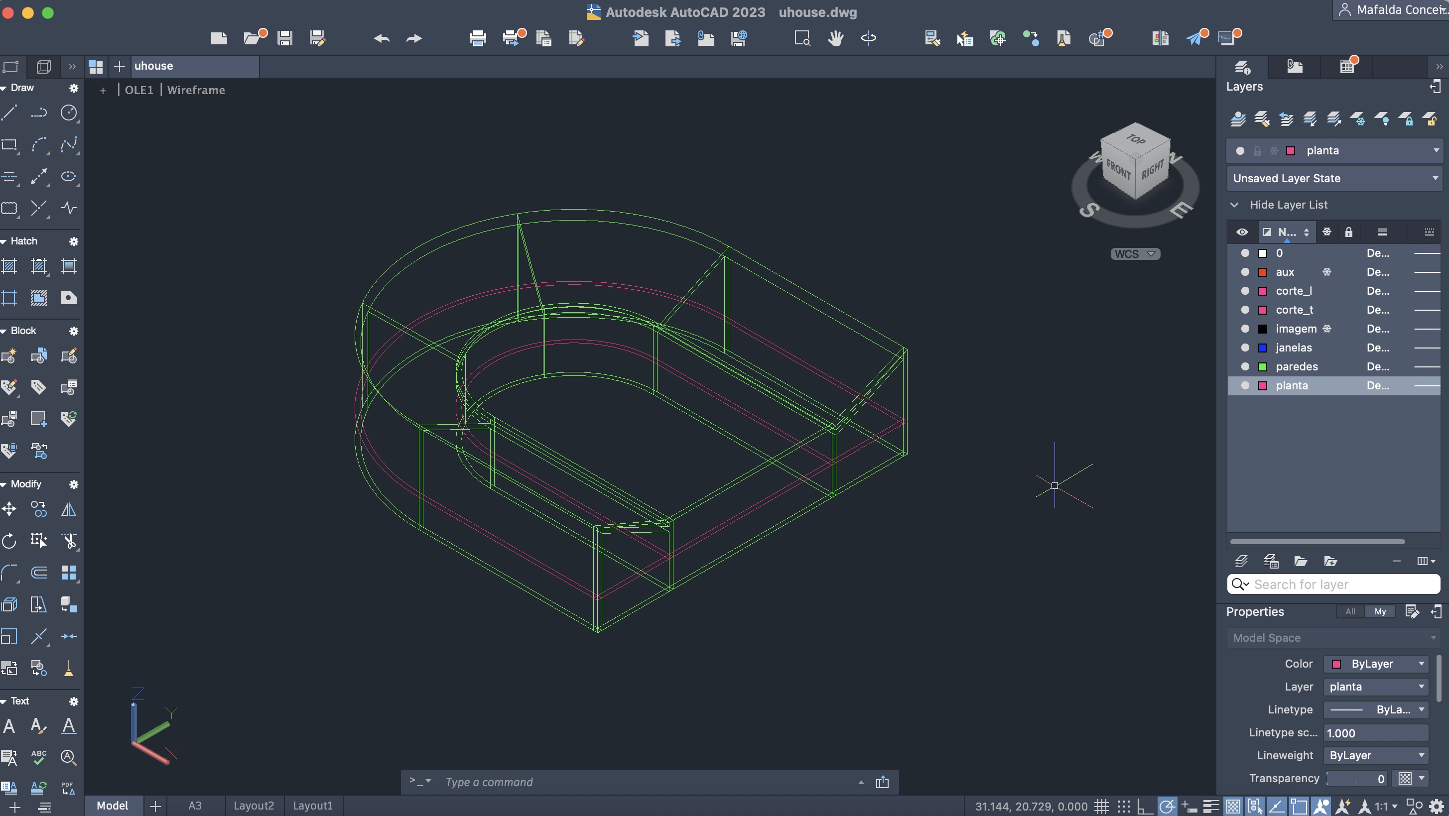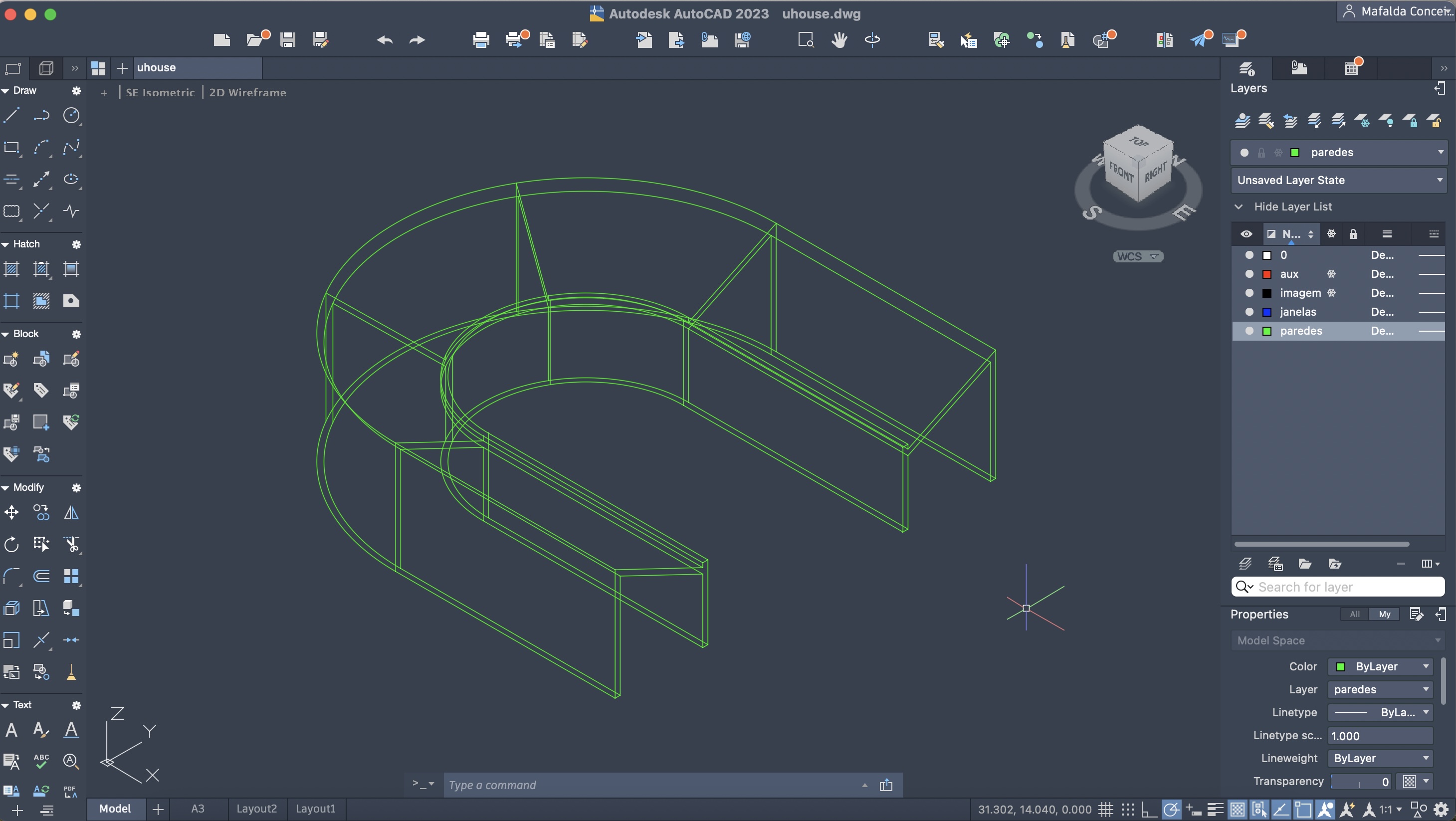 Início de um novo exercício de recriação de uma projeto do arquiteto Toyo Ito, denominada U HOUSE , num novo ficheiro AutoCAD.
