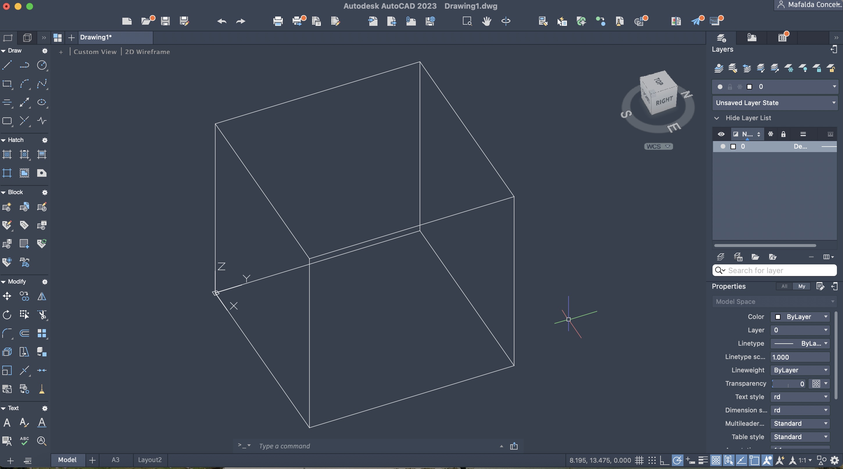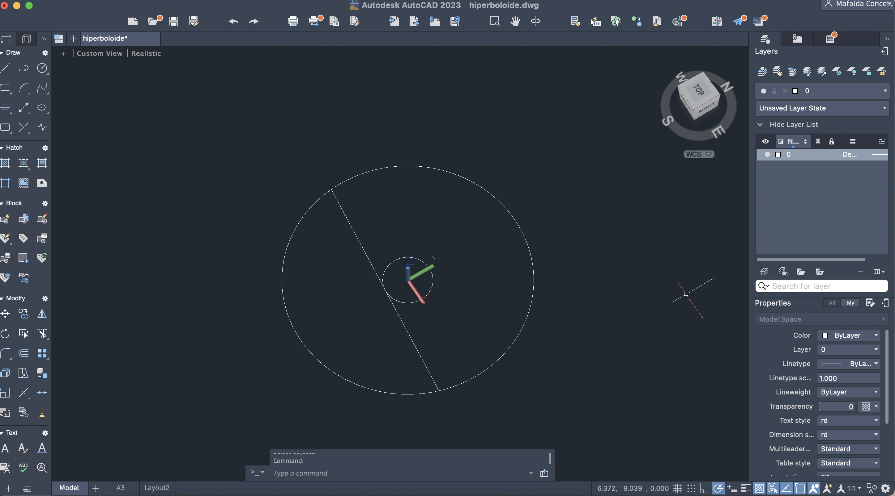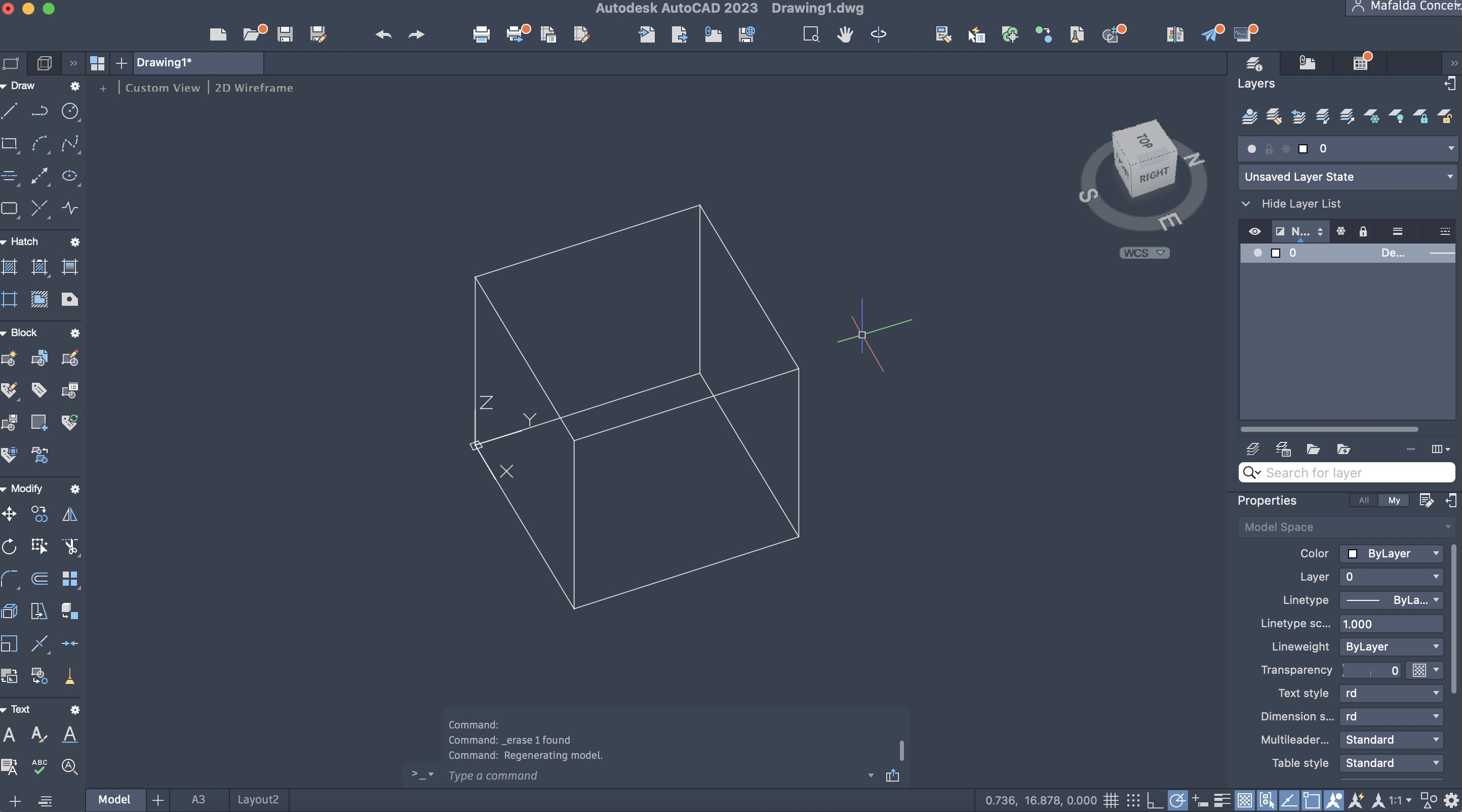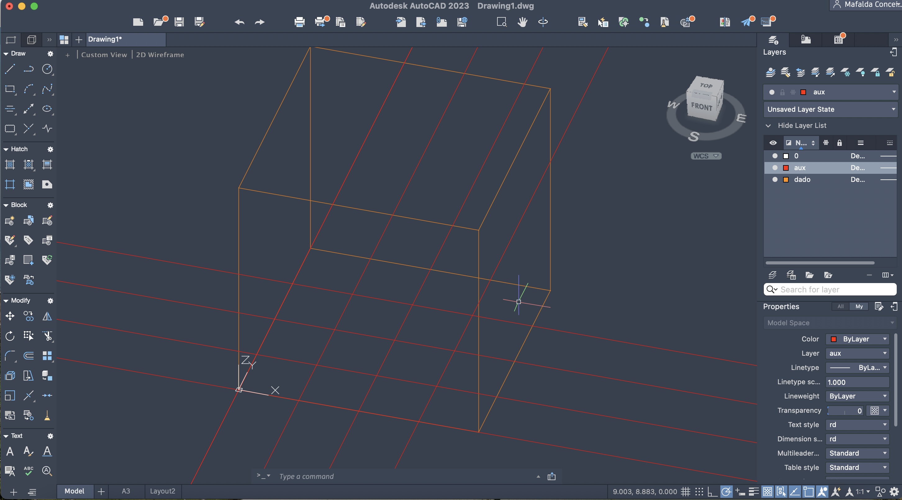 Início de um novo exercício de criação de um dado, num novo ficheiro AutoCAD.