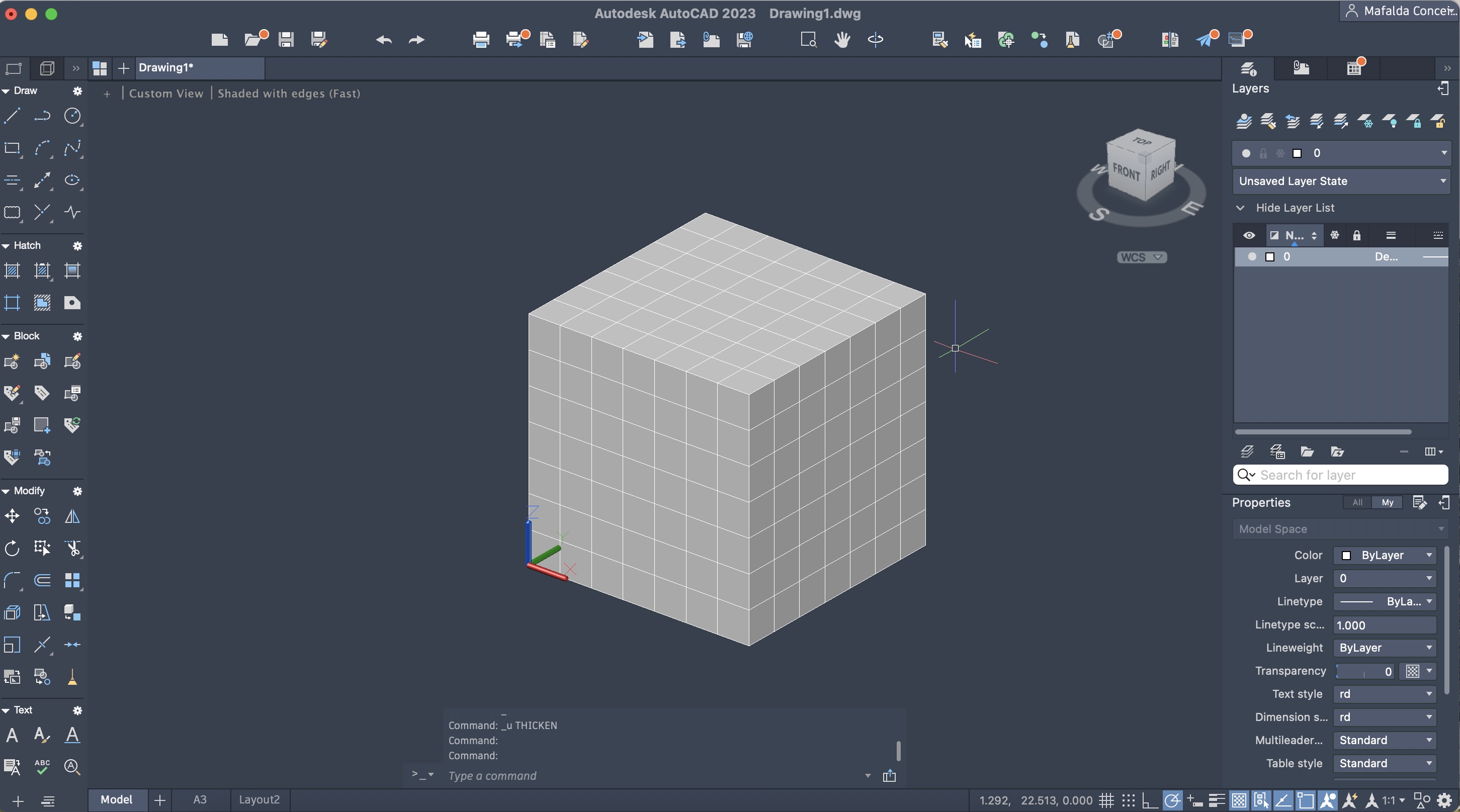 Explicação de como retirar espessura de um modelo, para a economização de material numa futura impressão 3D, num novo ficheiro AutoCAD.