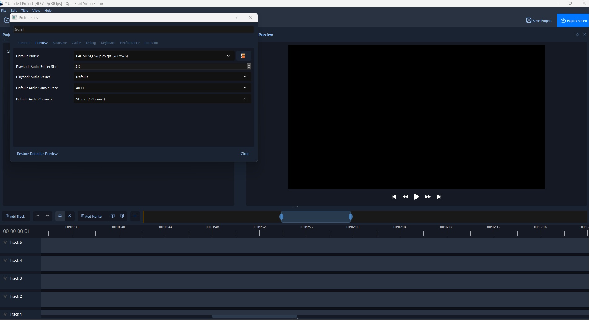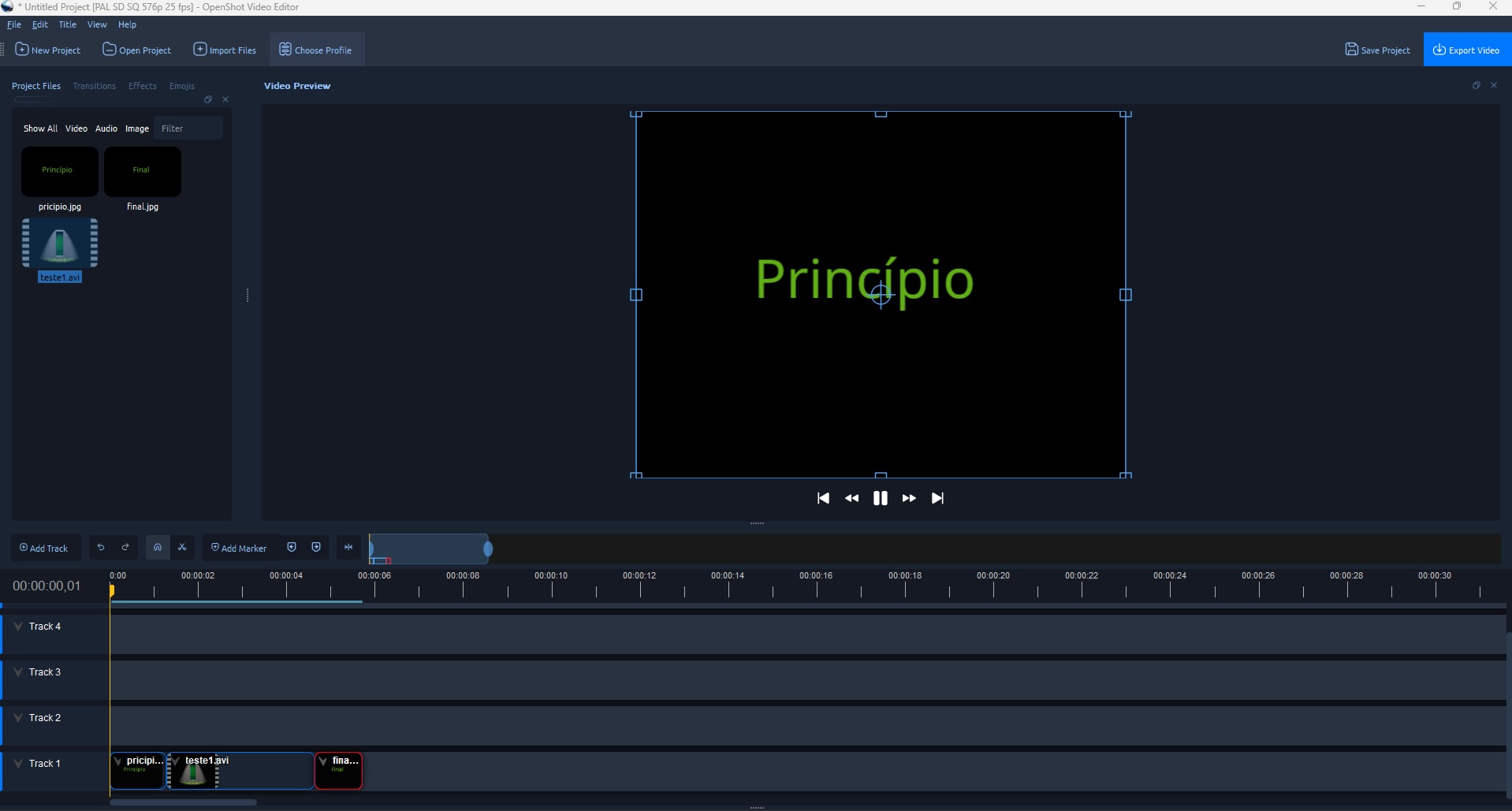 Reabertura do OpenShot e criação do vídeo com as legendas. Exportação do mesmo no formato (768x576) e em mp4.