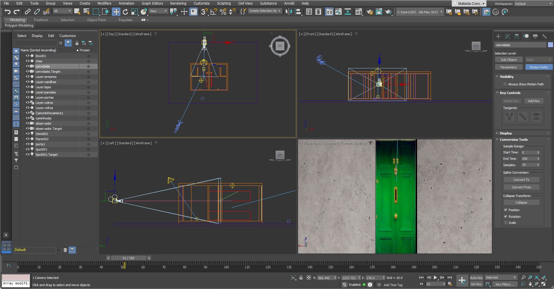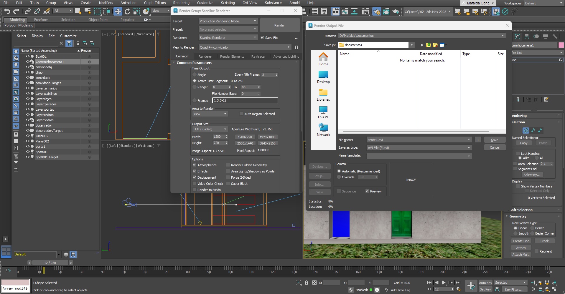 Criação do percurso através do comando: Motion Path. Criação de uma animação através do comando: Render Setup