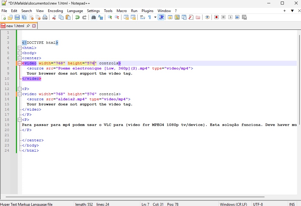 Cópia e modificação de um texto html que permite a inserção de vídeos.