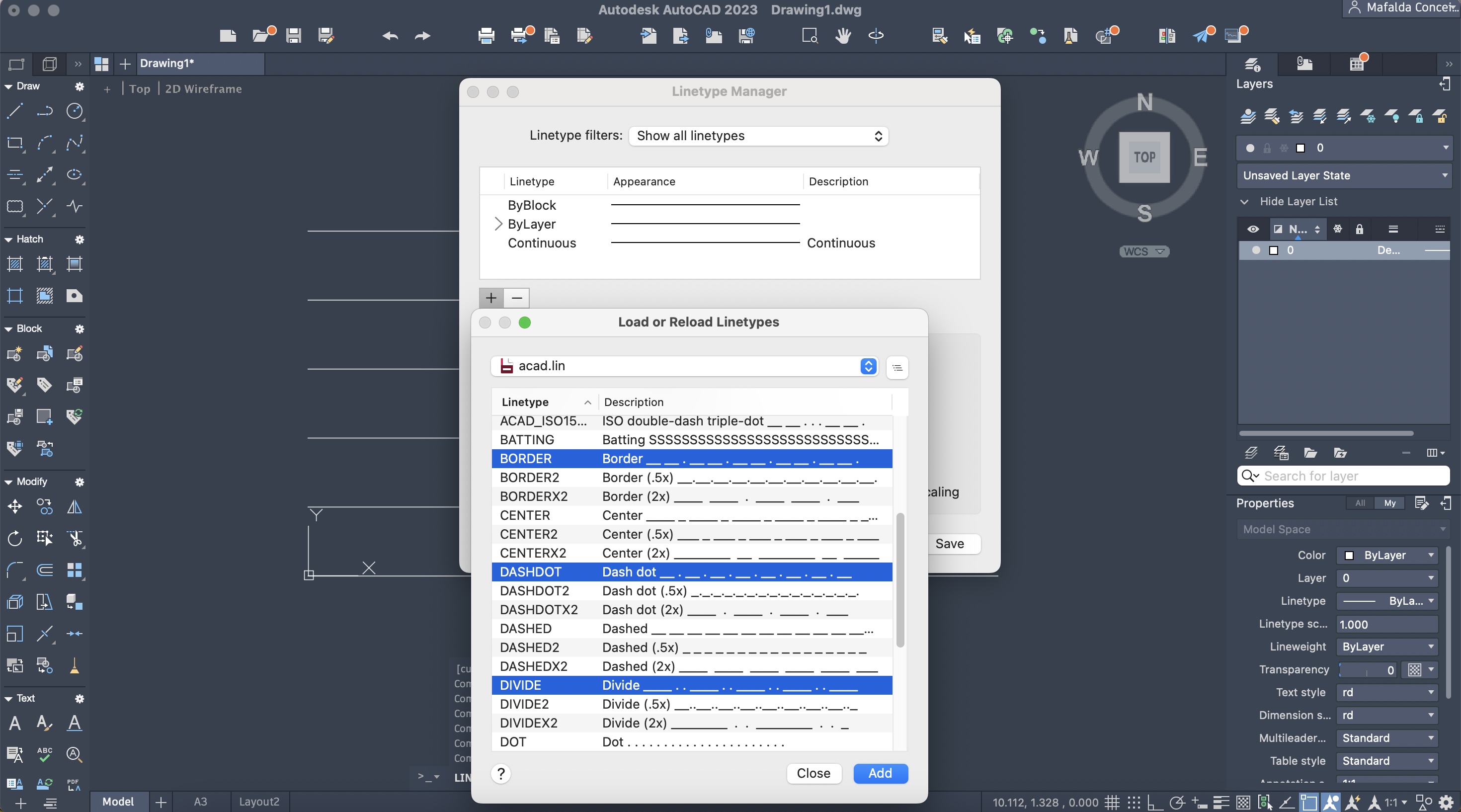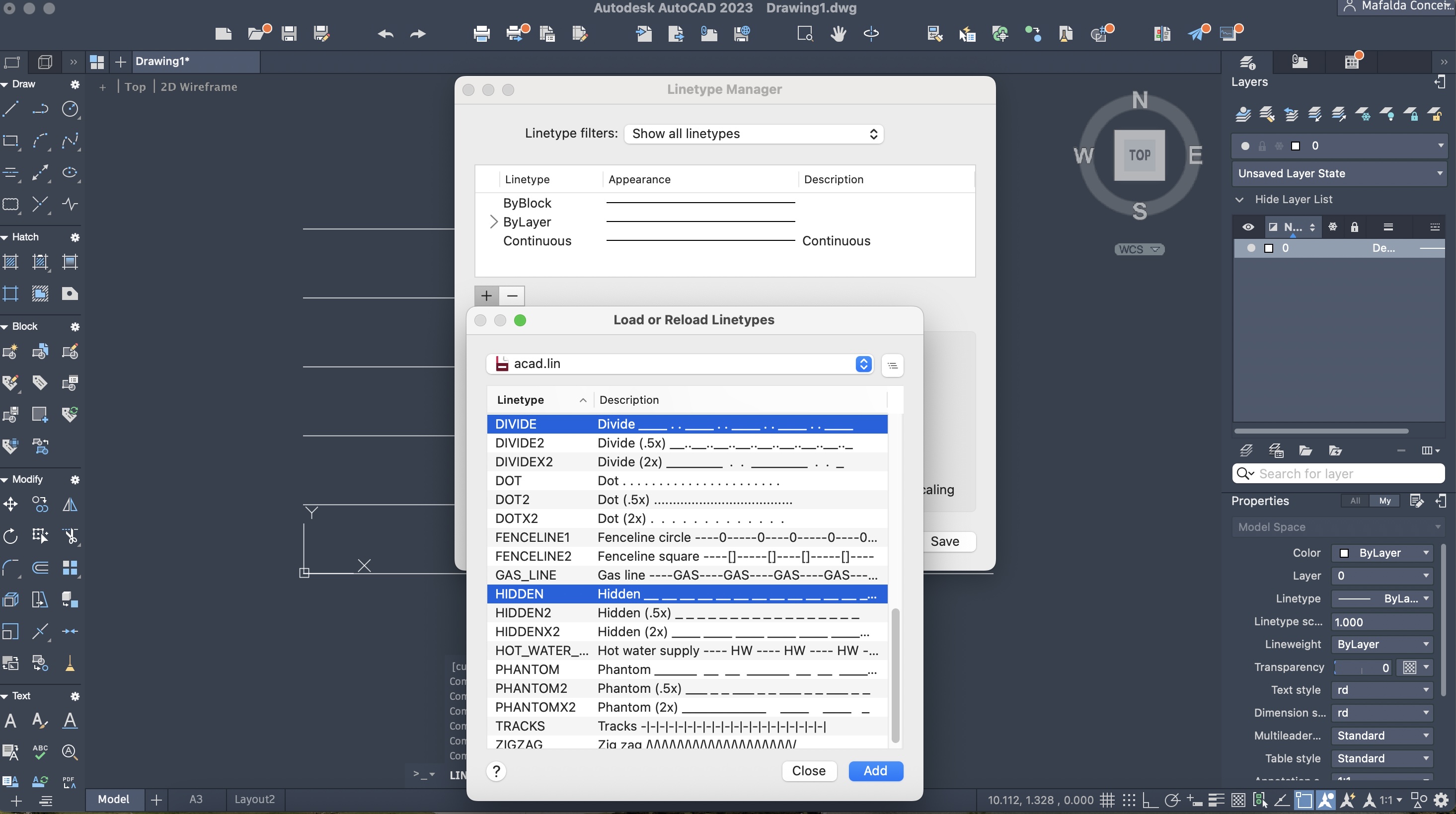 Criação de um novo ficheiro AutoCAD (acadliso.dwt) para a aprendizagem dos diferentes tipos de linhas.