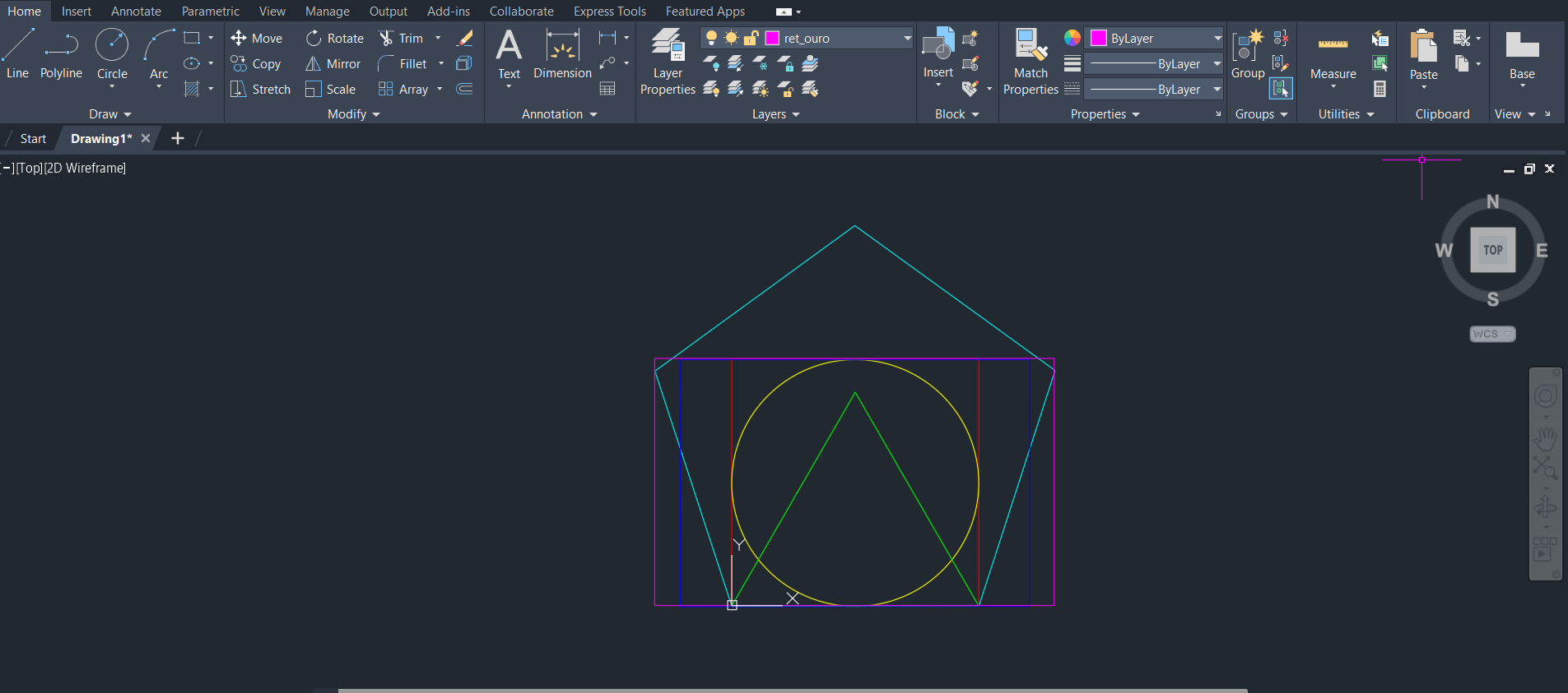Criamos mais uma layer: Esquadria.Usando os comandos XLINE para fazer linhas, OFFSET para recriar linhas já existentes com outras cordenadas,TRIM para cortar, FILLET para ajustar os cantos e por último, PEDIT para dar espessura, criamos uma esquadria para a folha a3.